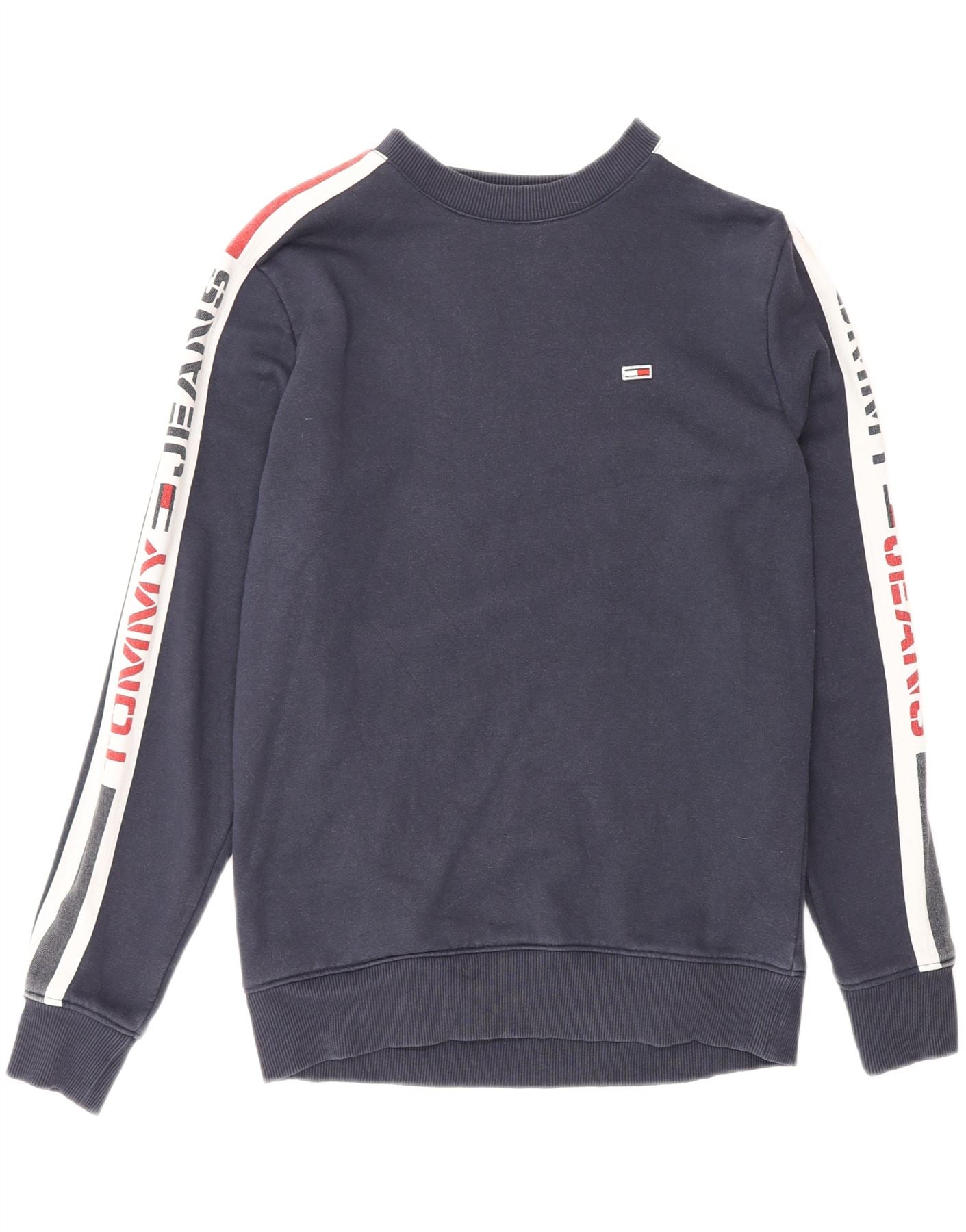 TOMMY HILFIGER Mens Graphic Sweatshirt Jumper Small Navy Blue Colourblock