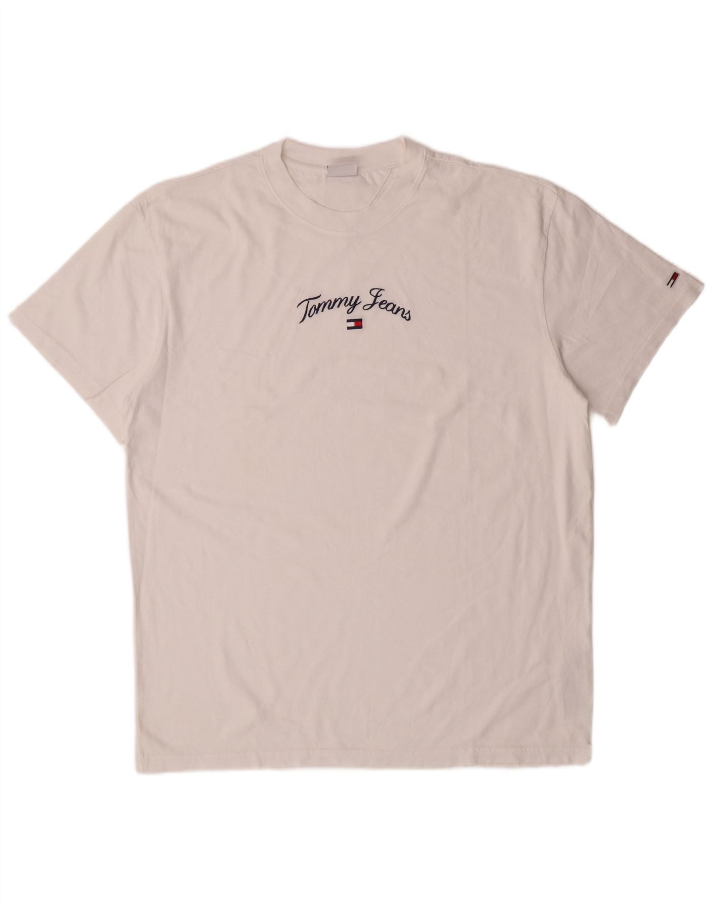 TOMMY HILFIGER Mens Graphic T-Shirt Top Large White Cotton