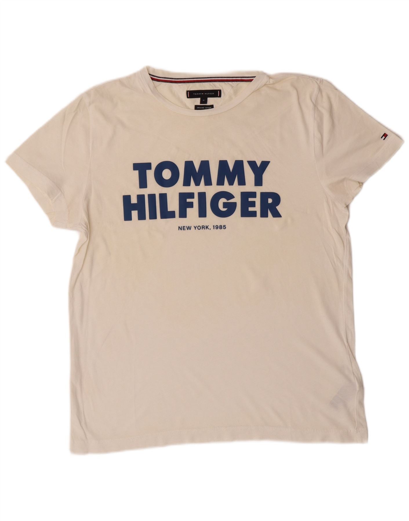 TOMMY HILFIGER Mens Graphic T-Shirt Top Medium White Cotton