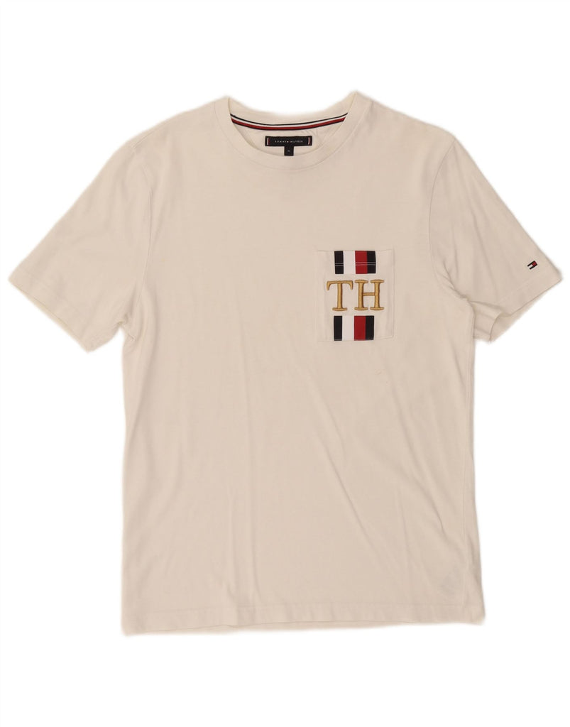 TOMMY HILFIGER Mens Graphic T-Shirt Top Medium White Cotton