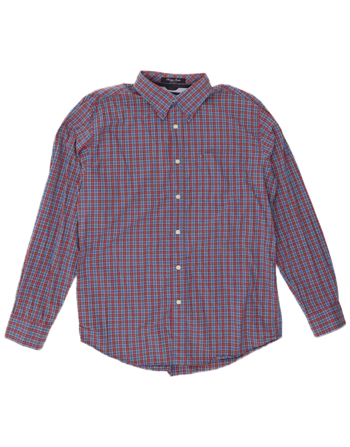 TOMMY HILFIGER Heritage-skjorte til mænd, stor blå ternet bomuld