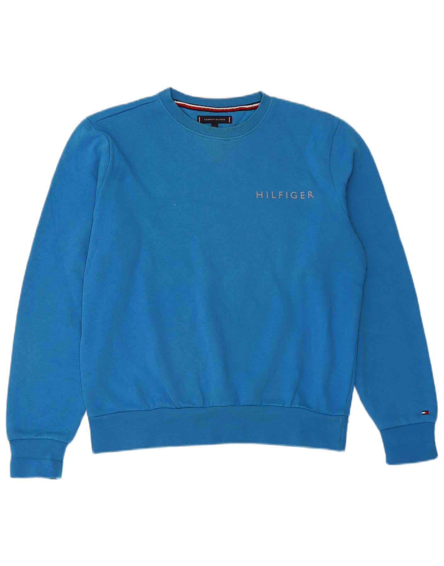 TOMMY HILFIGER Herre Loose Fit Sweatshirt Jumper Lille Blå Bomuld