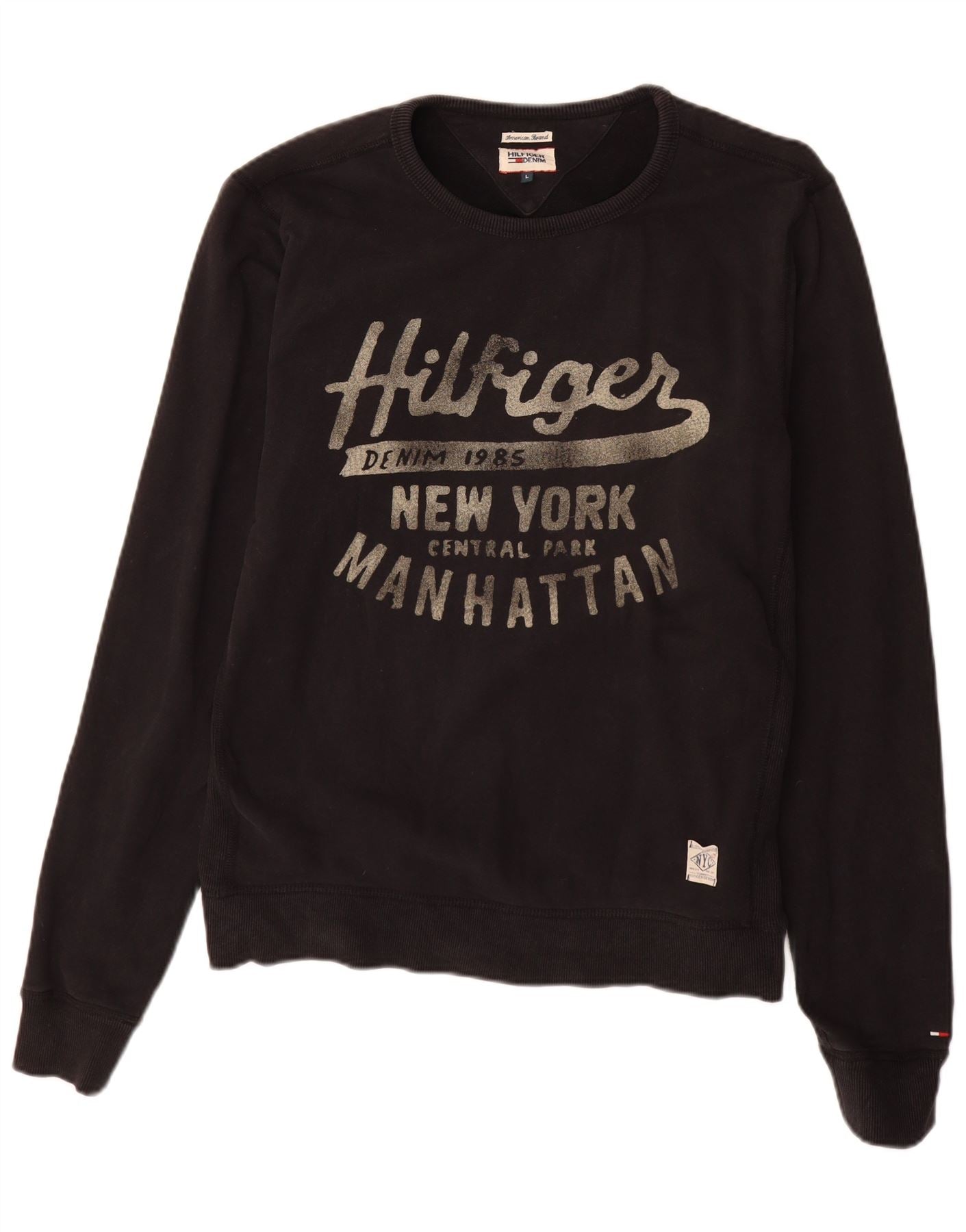 TOMMY HILFIGER Mens Manhattan Graphic Sweatshirt Jumper Large Black Cotton