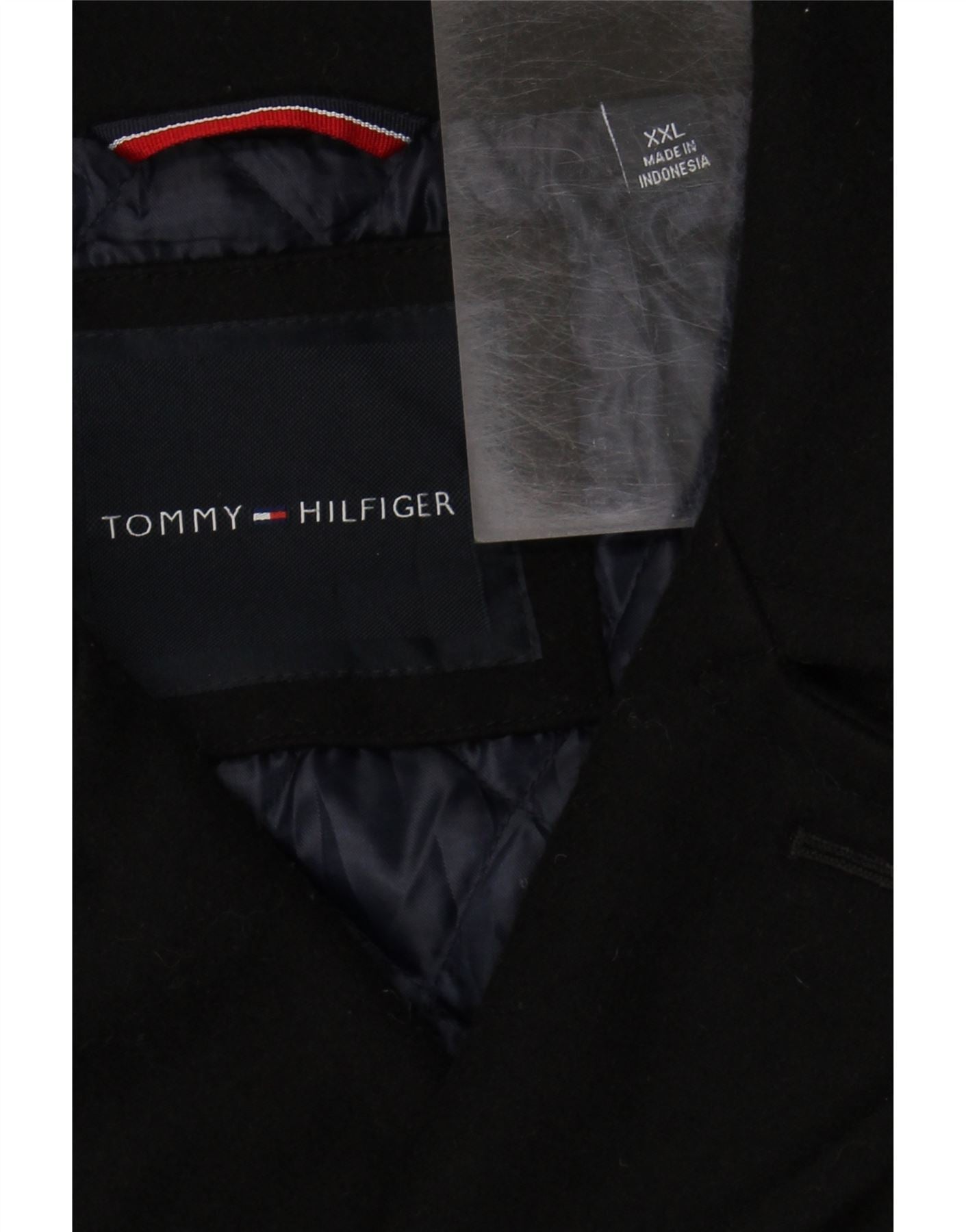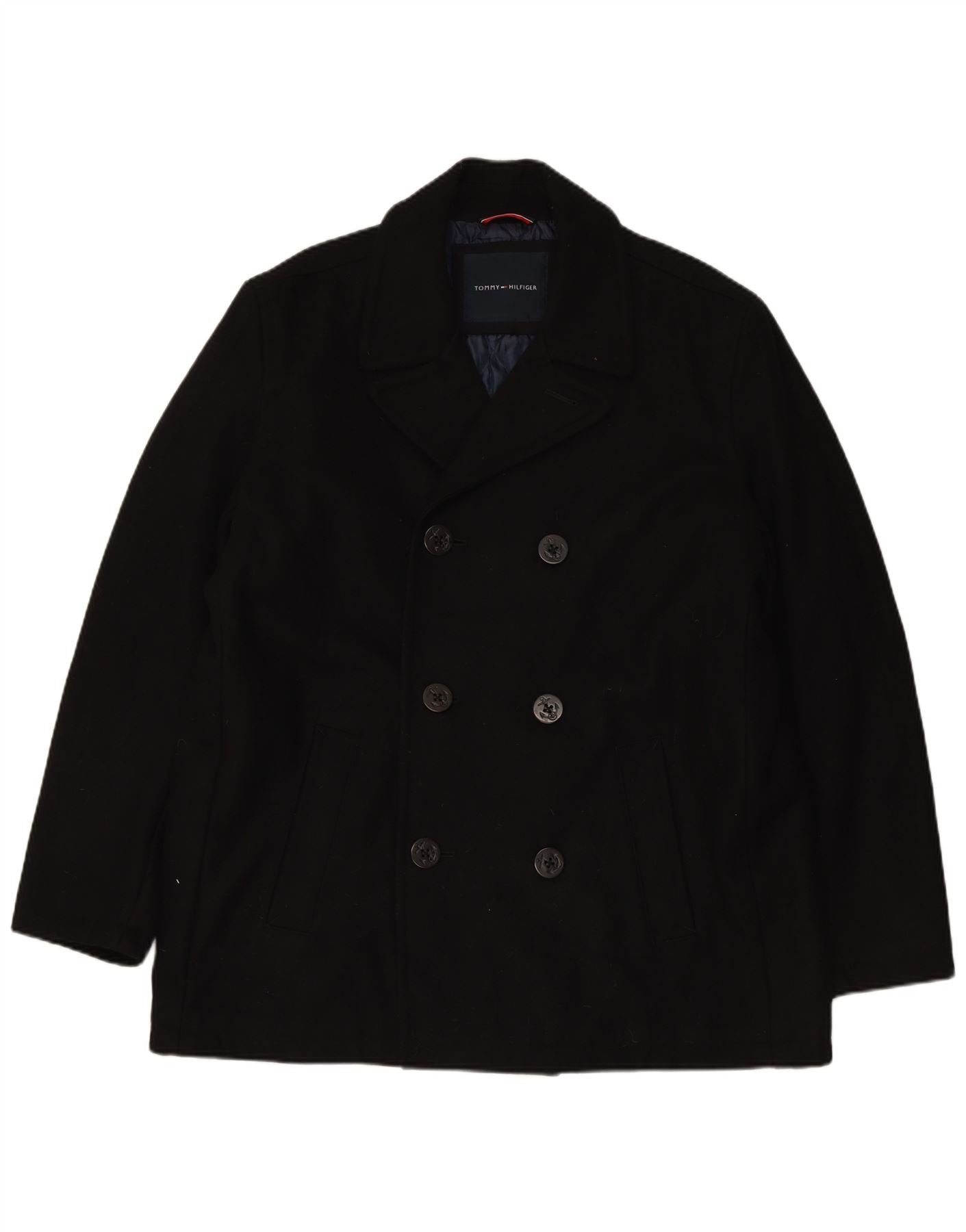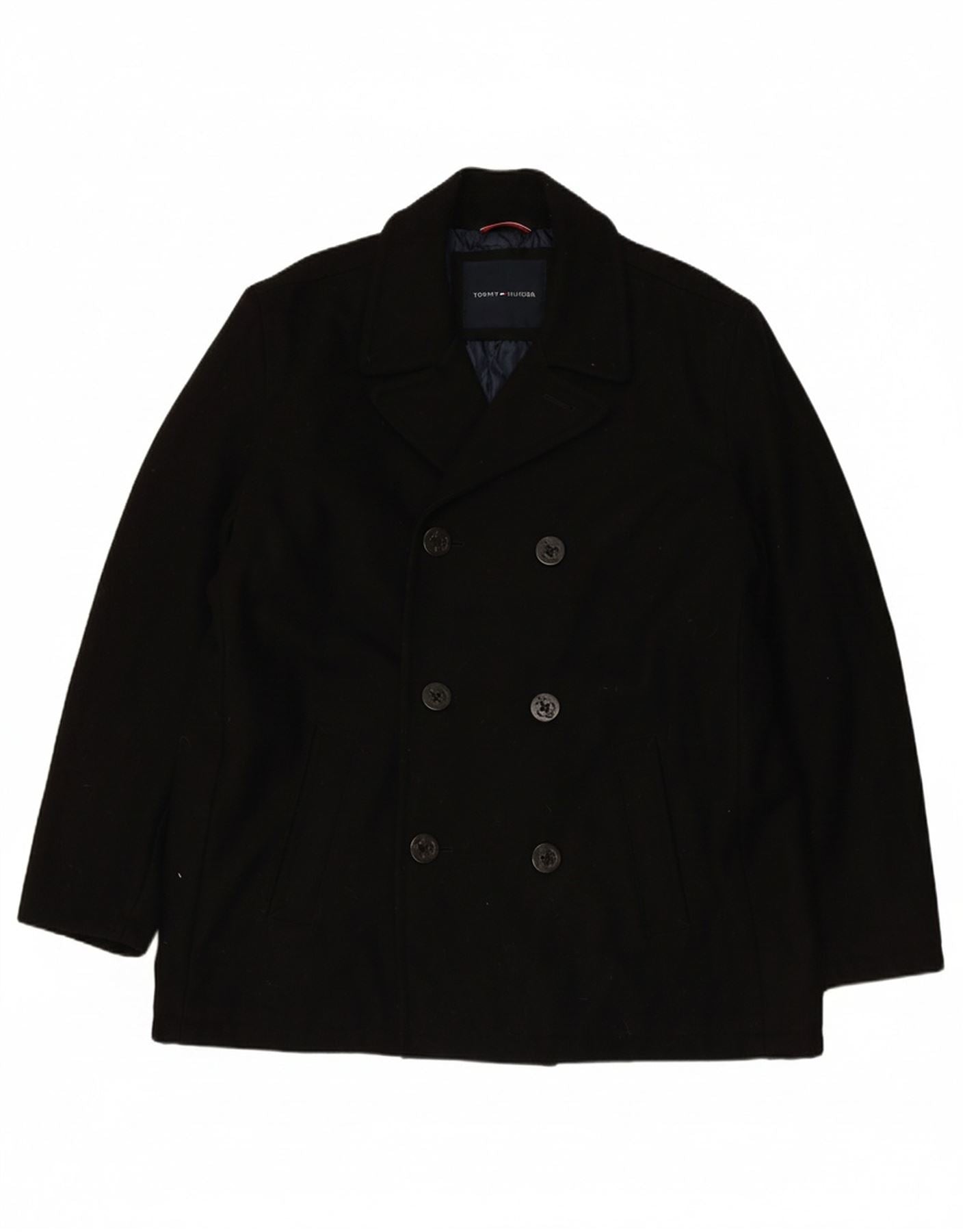 TOMMY HILFIGER Mens Pea Coat UK 44 2XL Black Wool