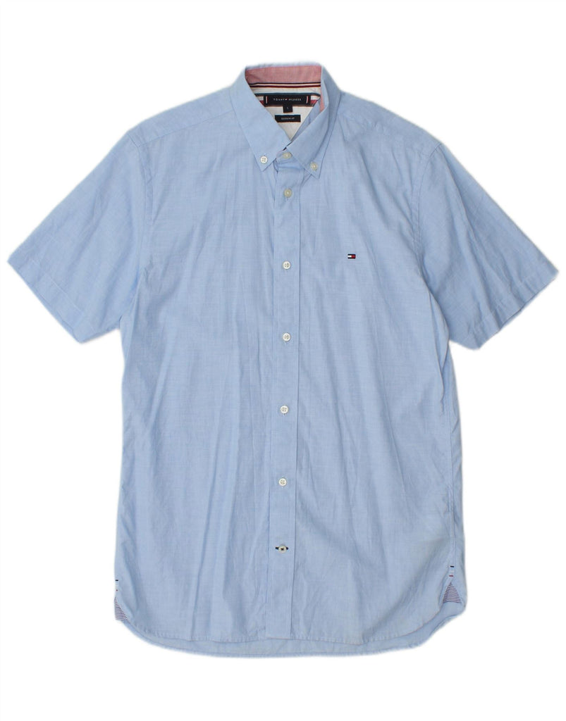 TOMMY HILFIGER Herre Regular Fit kortærmet skjorte lille blå bomuld