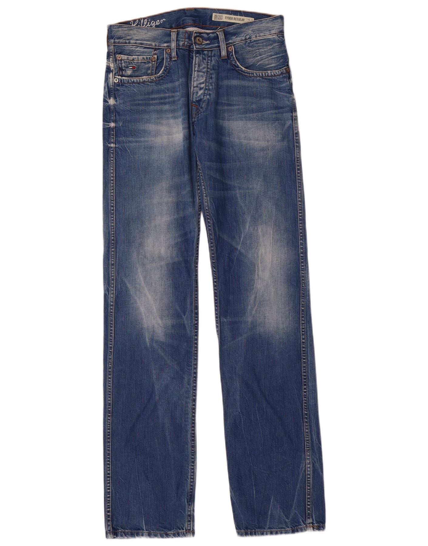 - AI beskrivelse: Disse Tommy Hilfiger Ryder Regular straight jeans til mænd er lavet af 100 procent bomuldsdenim i en klassisk blå vask. De har en normal pasform med lige ben for en tidløs silhuet. Knaplukningen sikrer en sikker og traditionel fastgørelse. Subtile distressede detaljer tilføjer en slidt æstetik. Praktiske lommer og en mærkelogoaccent fuldender designet.