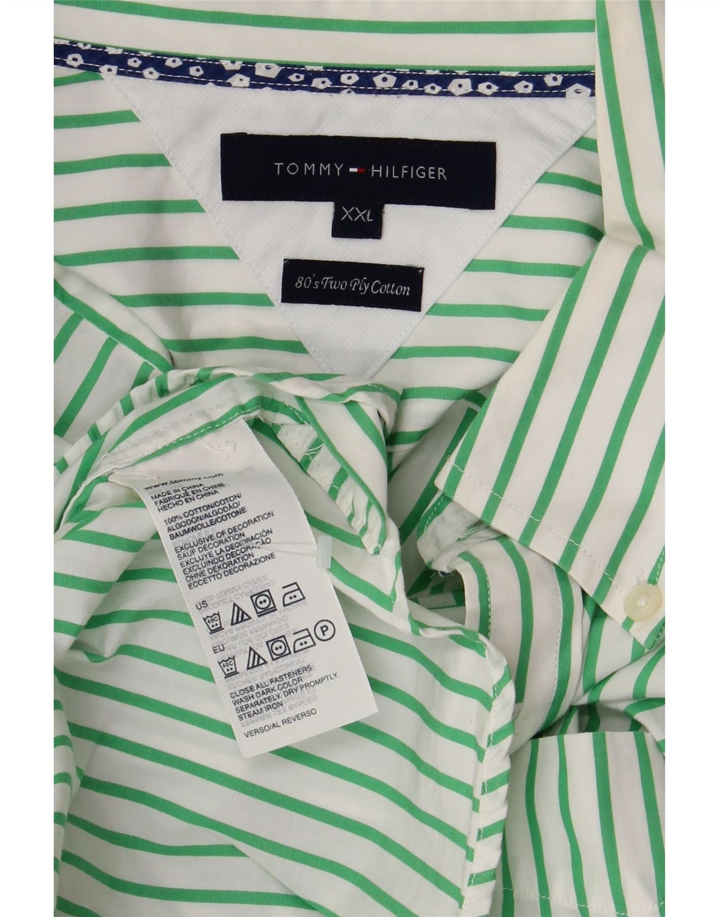 TOMMY HILFIGER Herreskjorte 2XL Grøn nålestribet bomuld