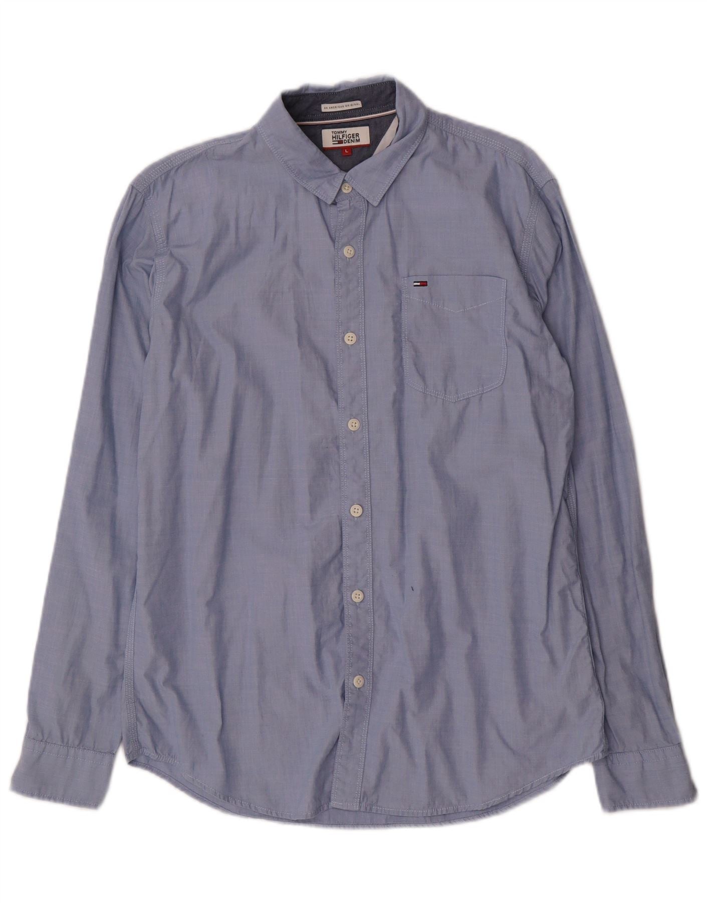 - AI beskrivelse: Denne Tommy Hilfiger denimskjorte til mænd er lavet af 100 procent bomuldsdenim i en klassisk blå nuance. Den har en halsudskæring og en fuld knap foran. Lange ærmer afsluttes med knappede manchetter. En enkelt brystlomme tilføjer praktiske detaljer. Den almindelige pasform sikrer behageligt slid. Tommy Hilfigers signaturlogo er diskret placeret, hvilket forstærker dens klassiske stil.
