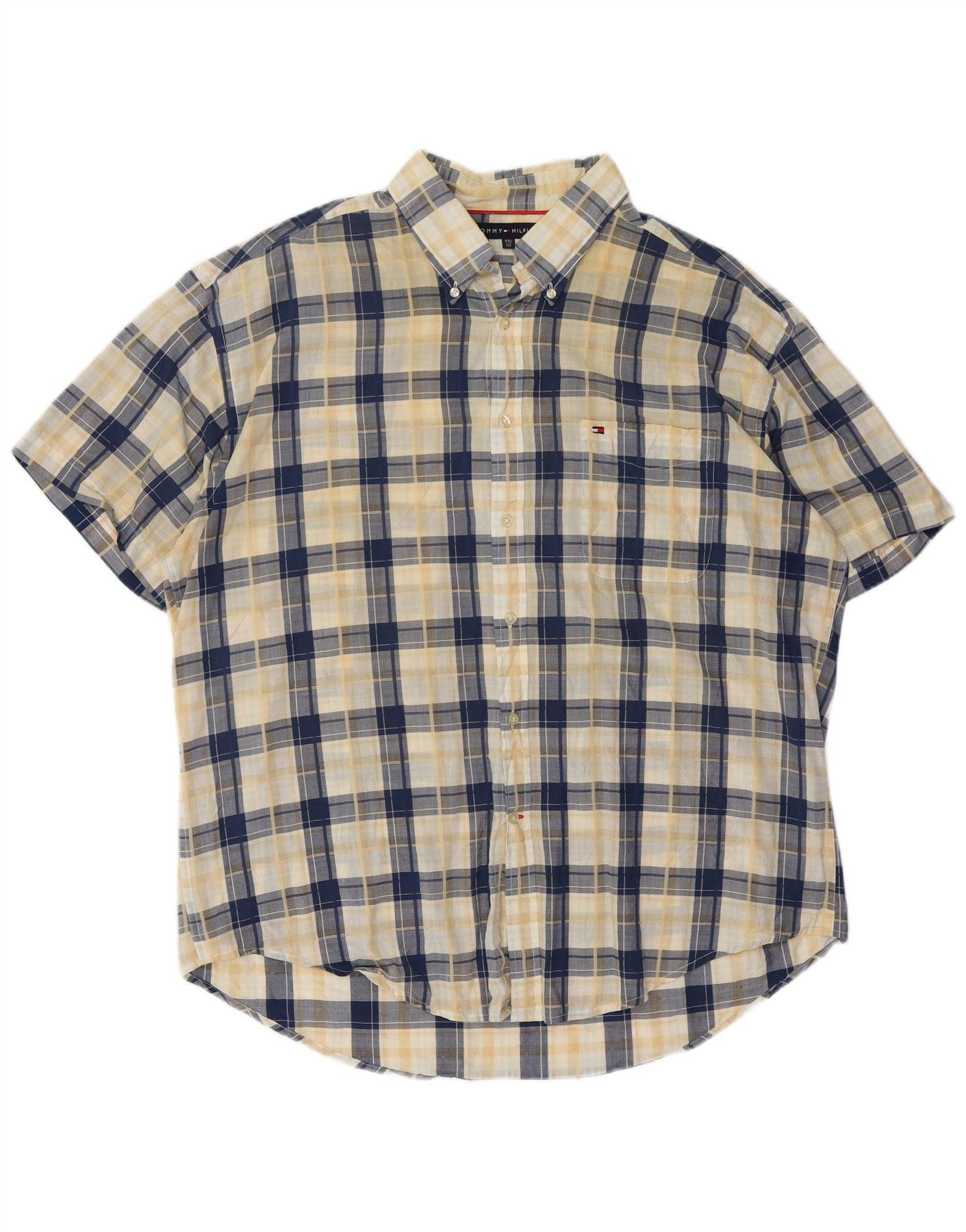 TOMMY HILFIGER kortærmet herreskjorte 2XL marineblå ternet bomuld