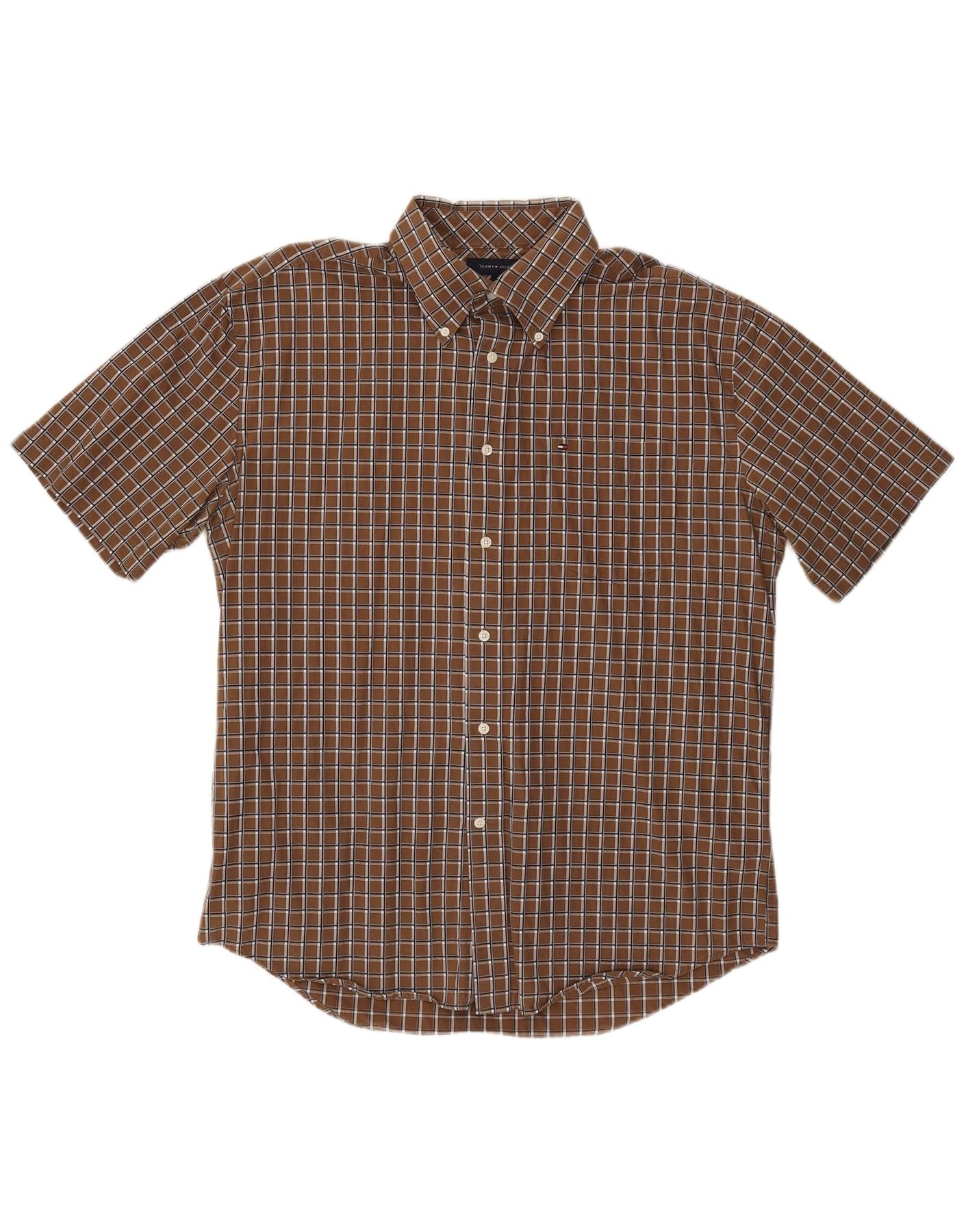 TOMMY HILFIGER Kortærmet herreskjorte Stor brun ternet bomuld