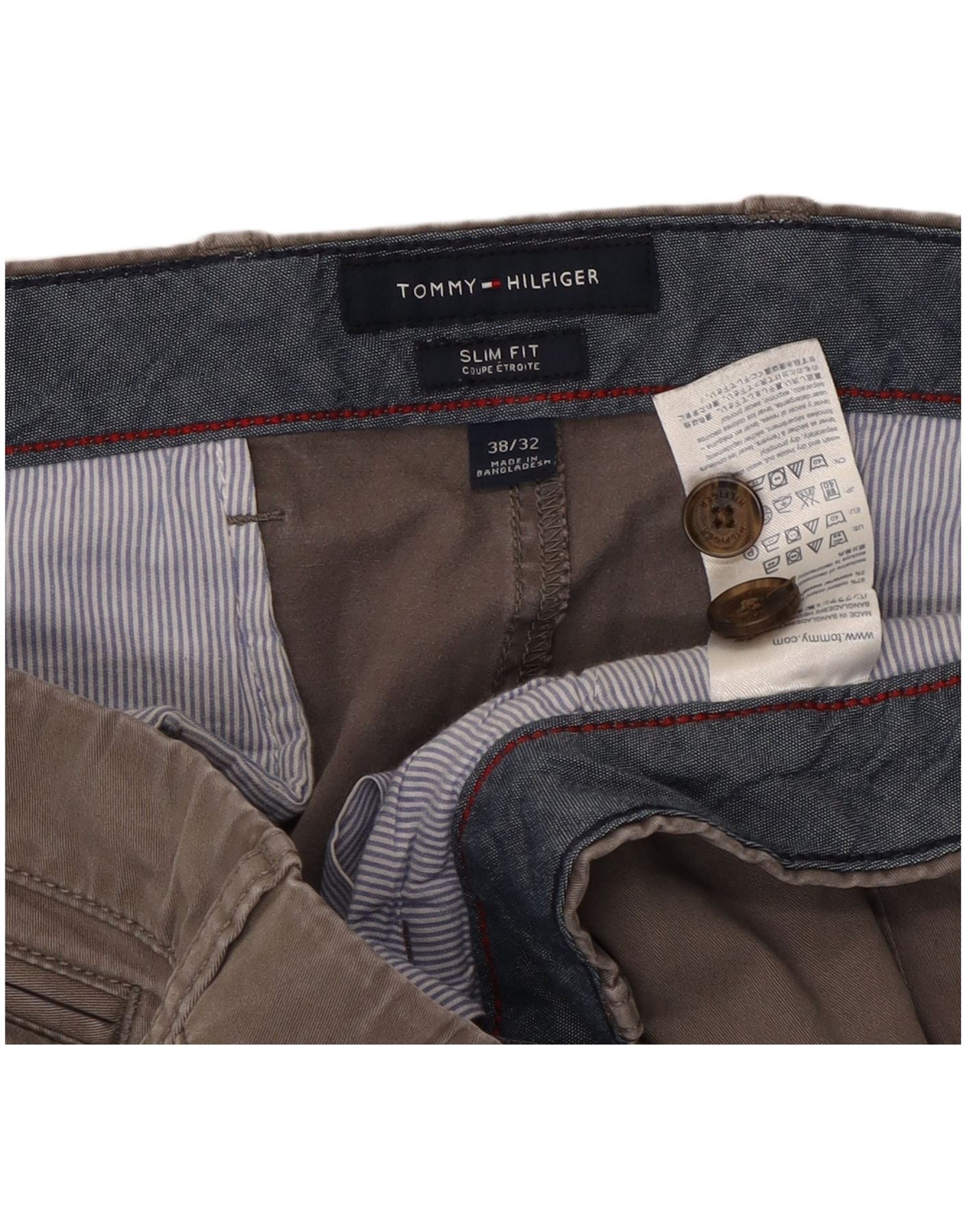 TOMMY HILFIGER Slim Fit Chinobukser til mænd W38 L29 Grå bomuld