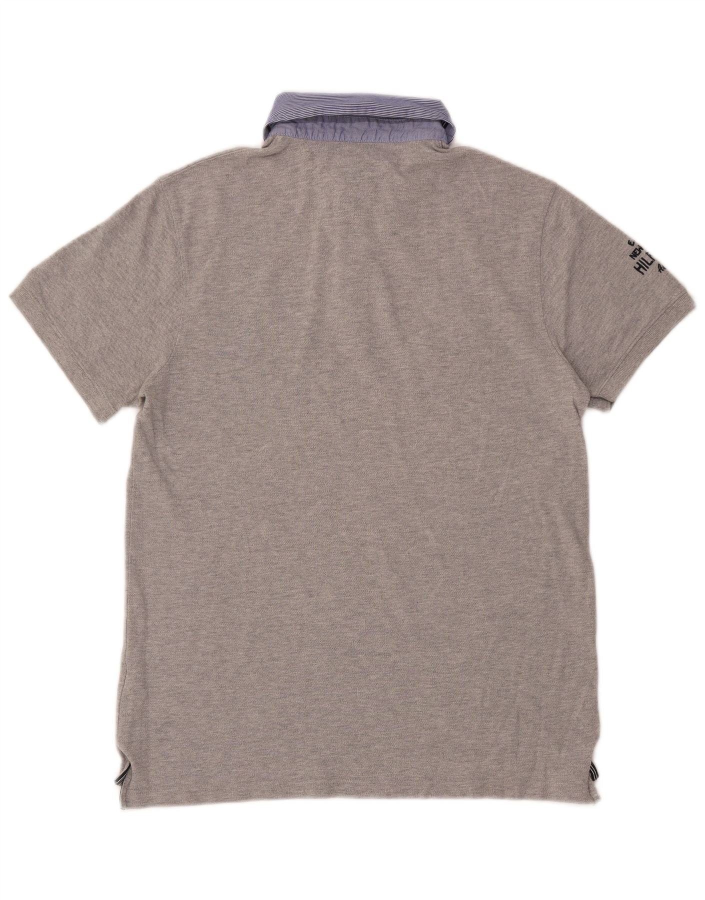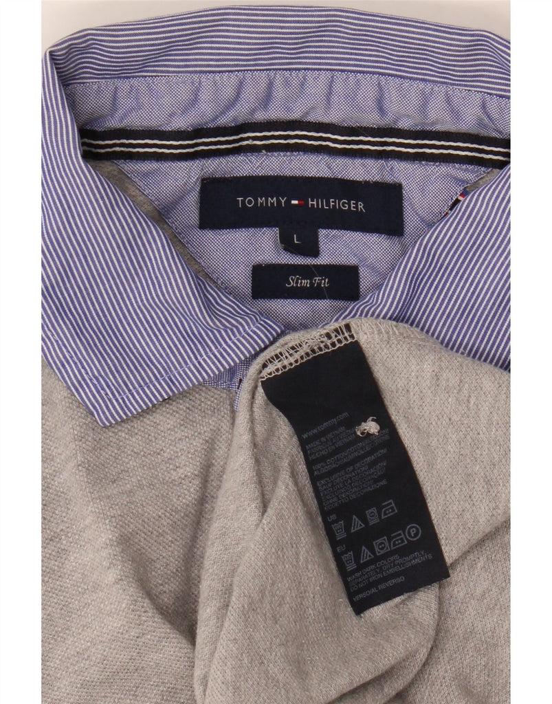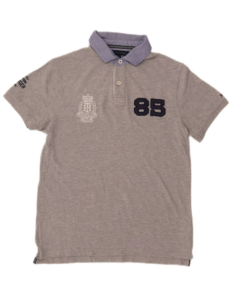 TOMMY HILFIGER Herre Slim Fit grafisk poloshirt Stor grå bomuld