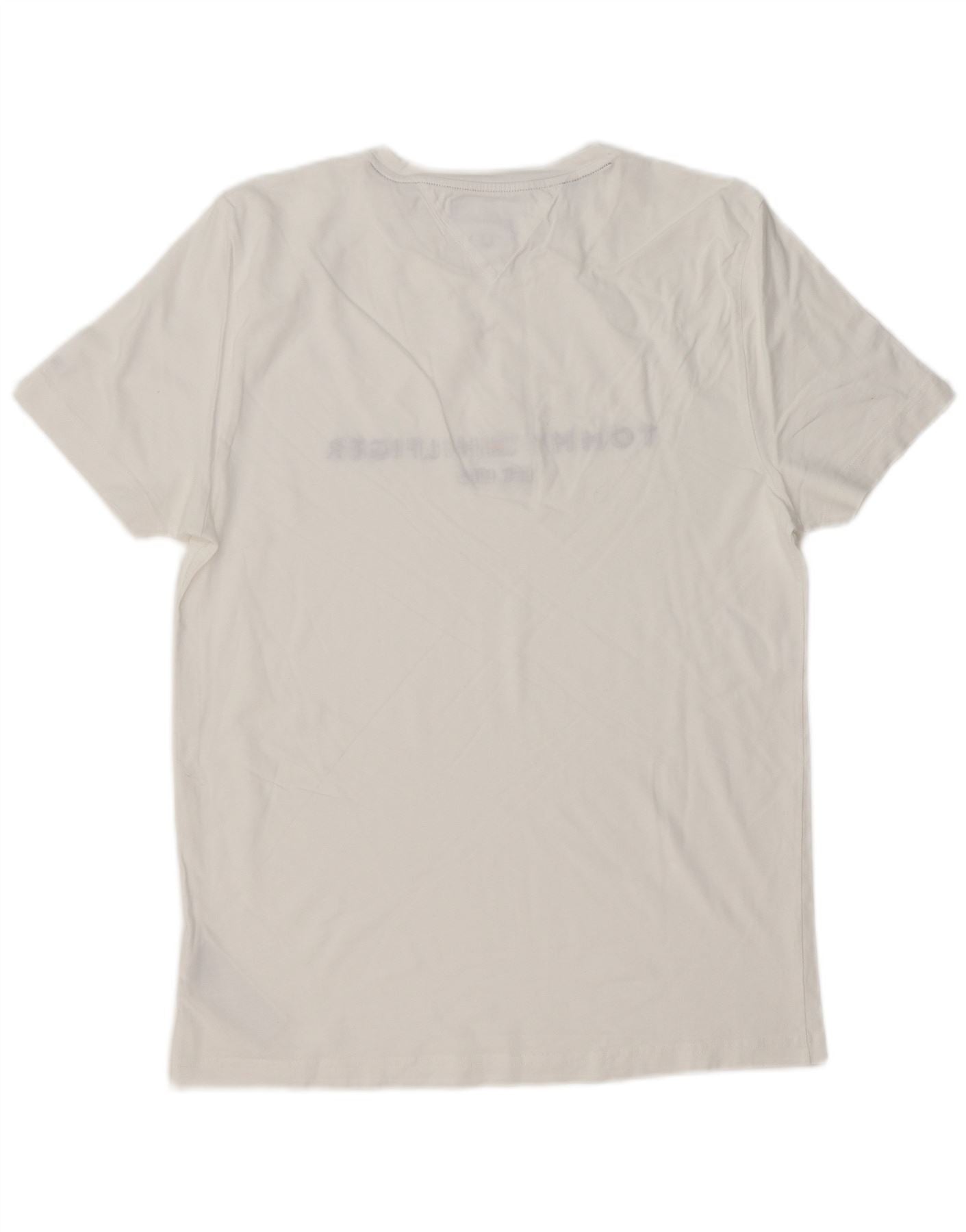 TOMMY HILFIGER Herre Slim Fit Grafisk T-shirt Top Stor hvid bomuld