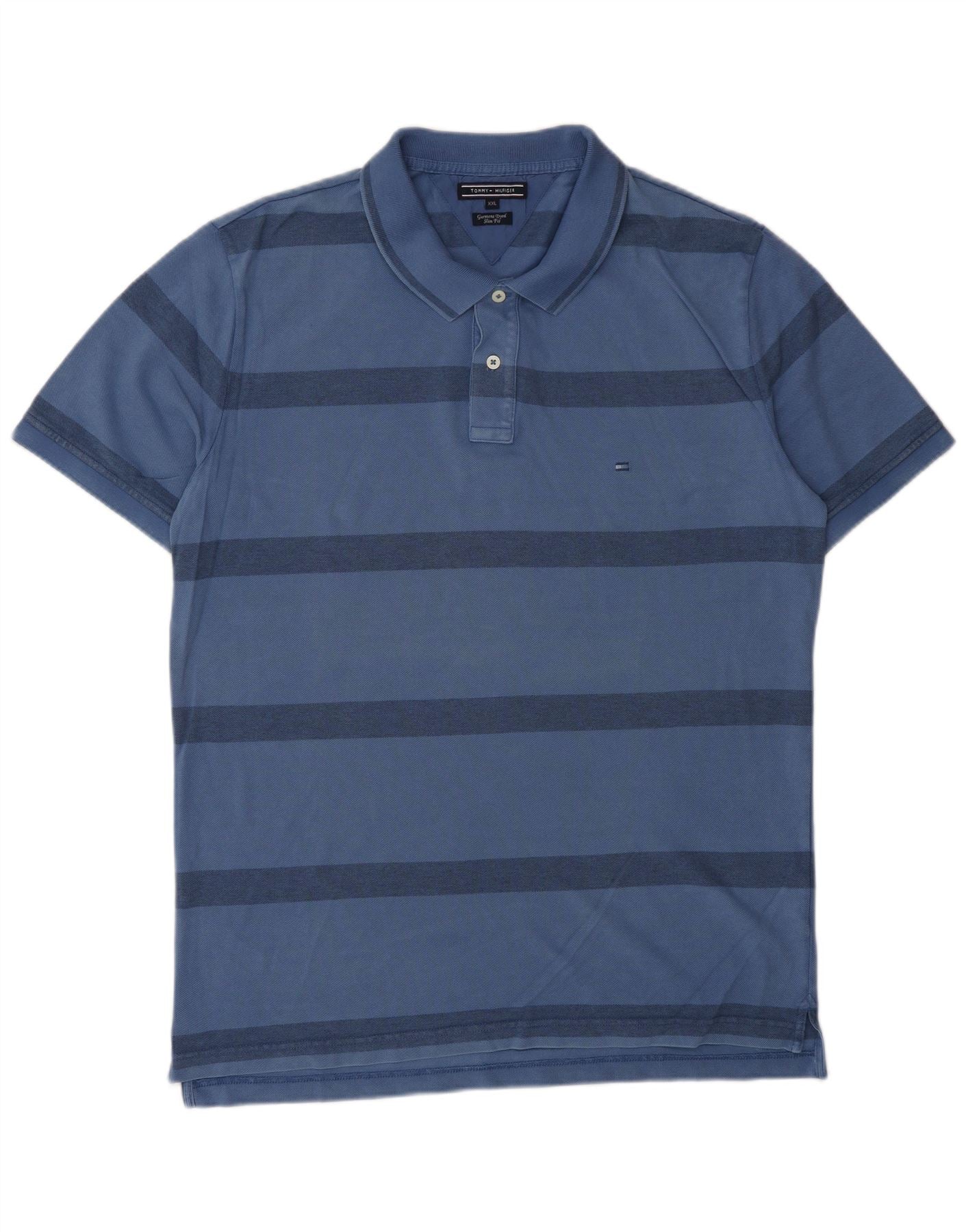 TOMMY HILFIGER Herre Slim Fit Polo Shirt 2XL Blå Stribet Bomuld