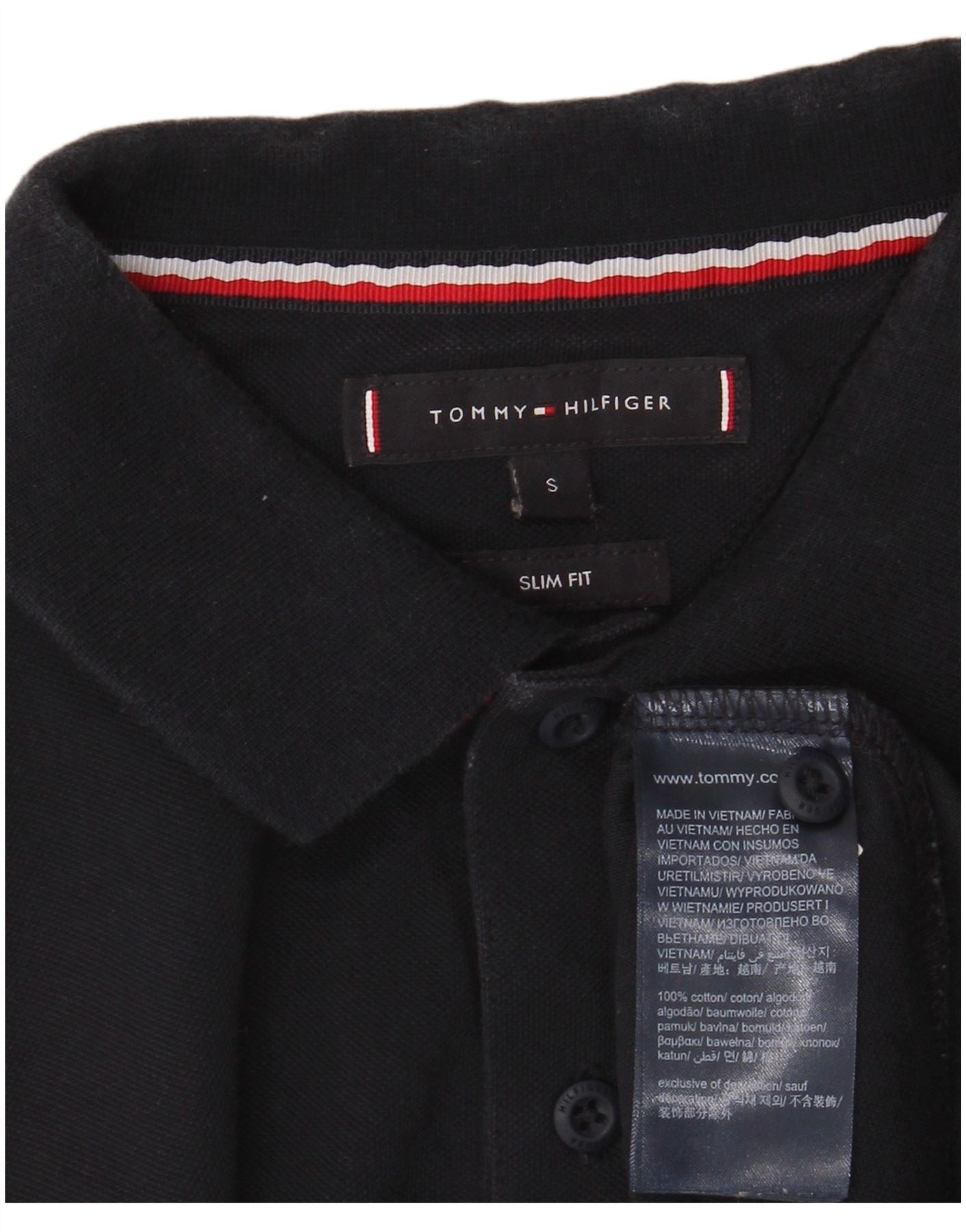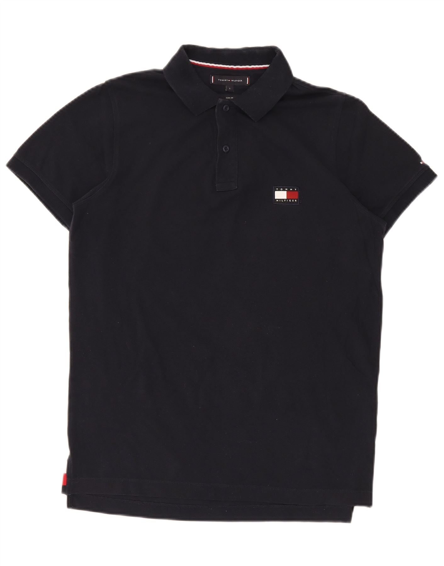 TOMMY HILFIGER Mens Slim Fit Polo Shirt Small Navy Blue Cotton