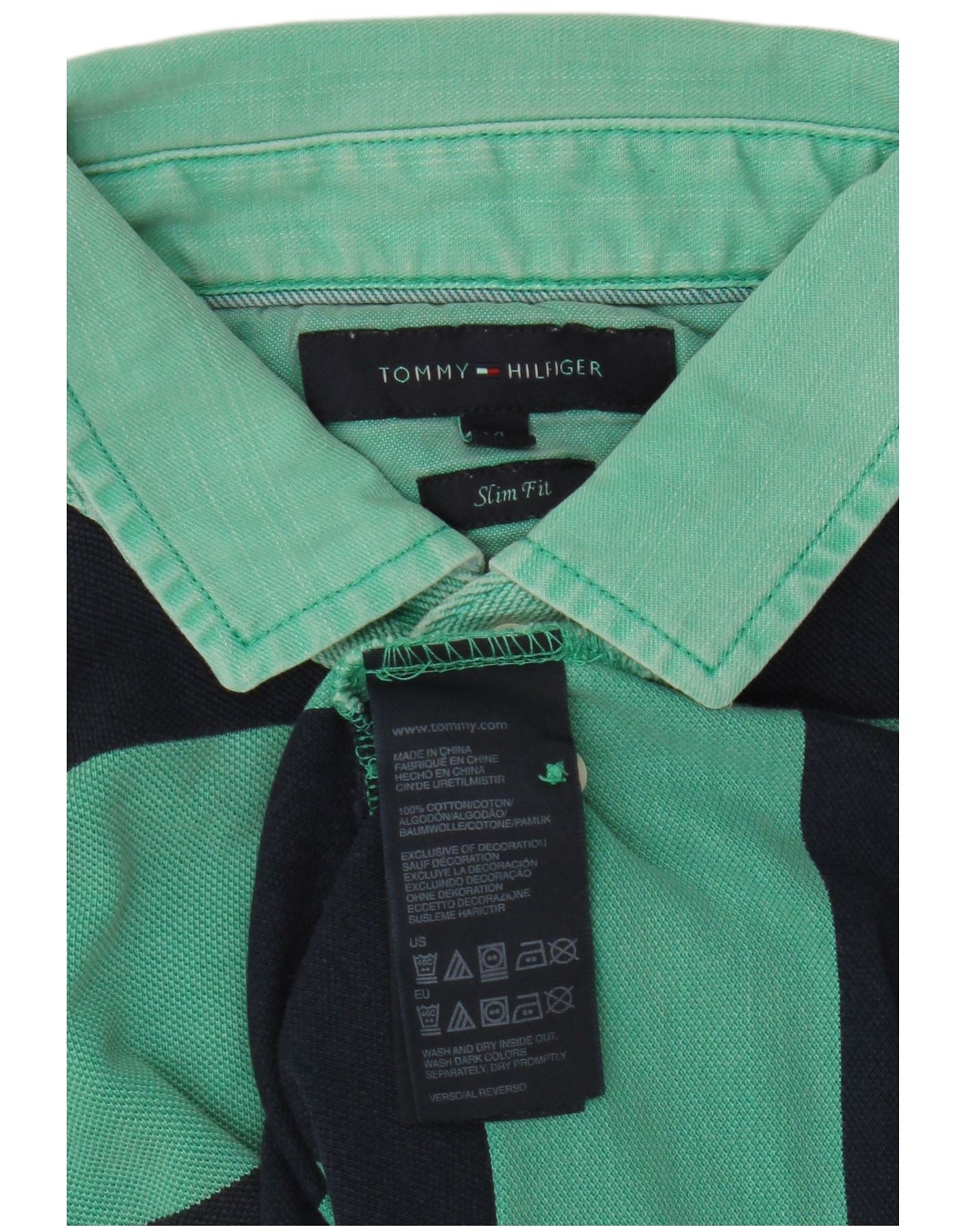 TOMMY HILFIGER Herre Slim Fit Polo Shirt XL Grøn Stribet Bomuld