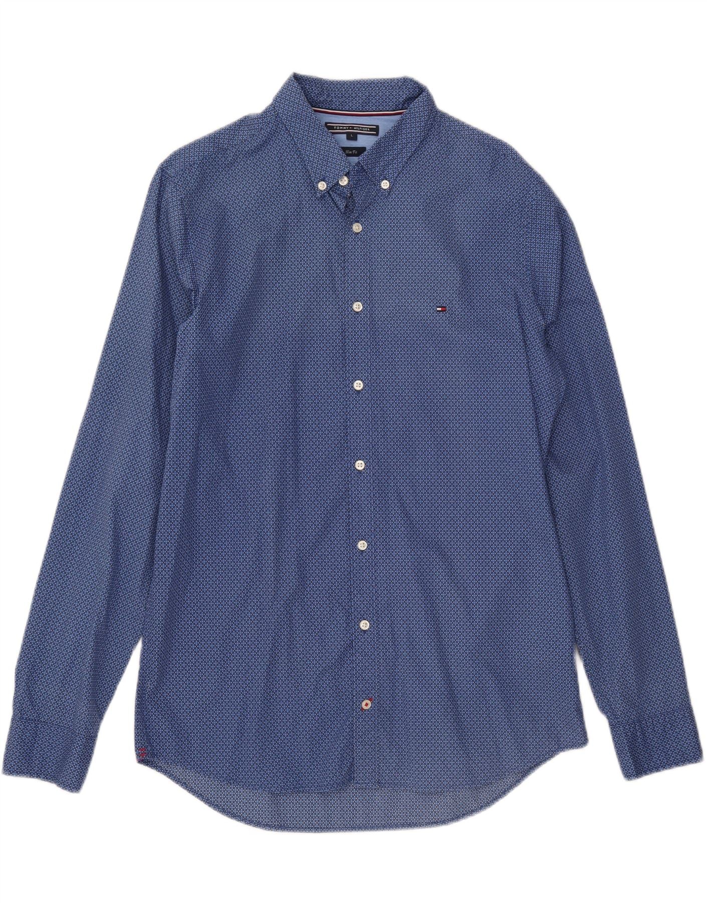 TOMMY HILFIGER Slim Fit skjorte til mænd, stor blå geometrisk bomuld