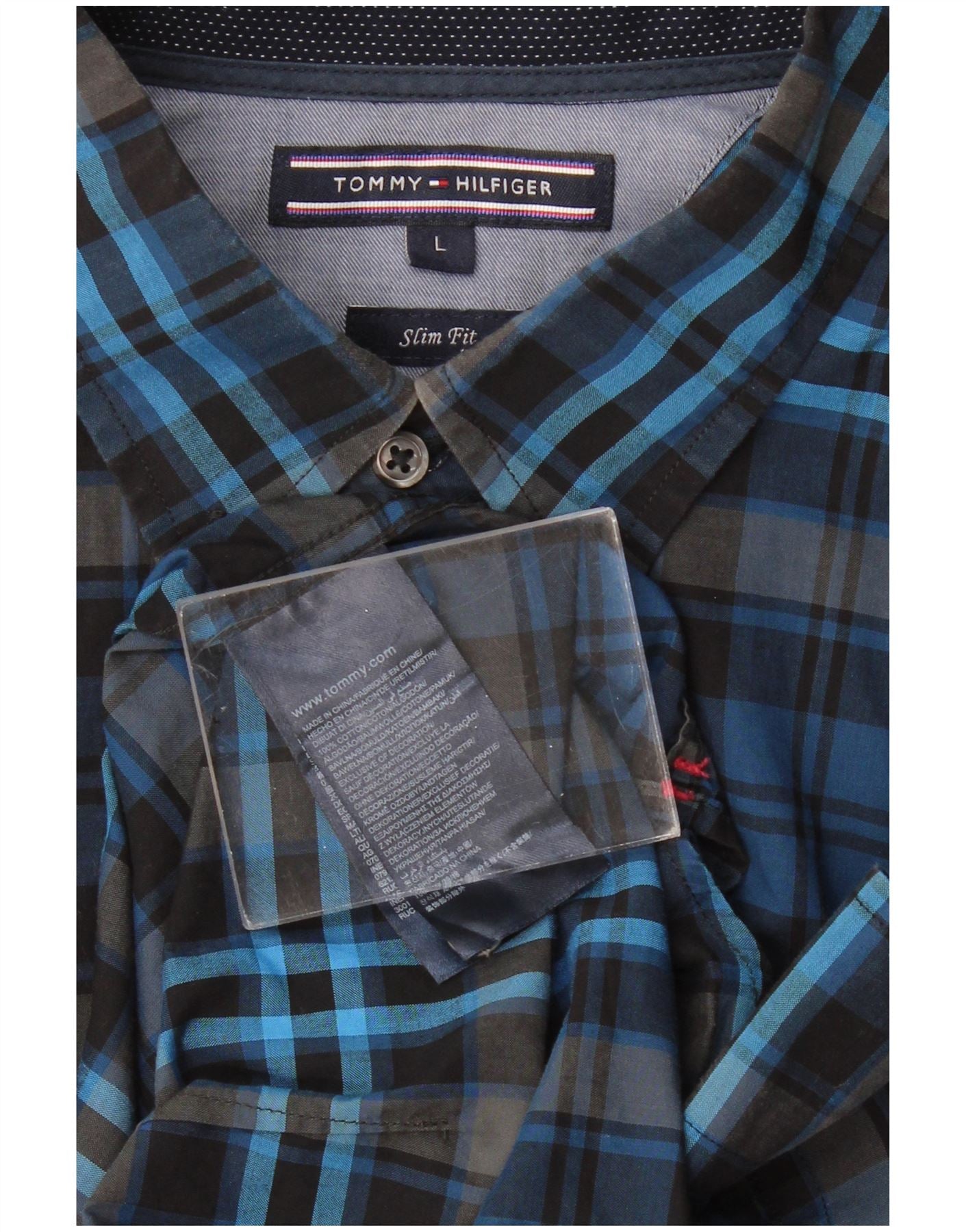 TOMMY HILFIGER Slim Fit skjorte til mænd Stor marineblå ternet bomuld
