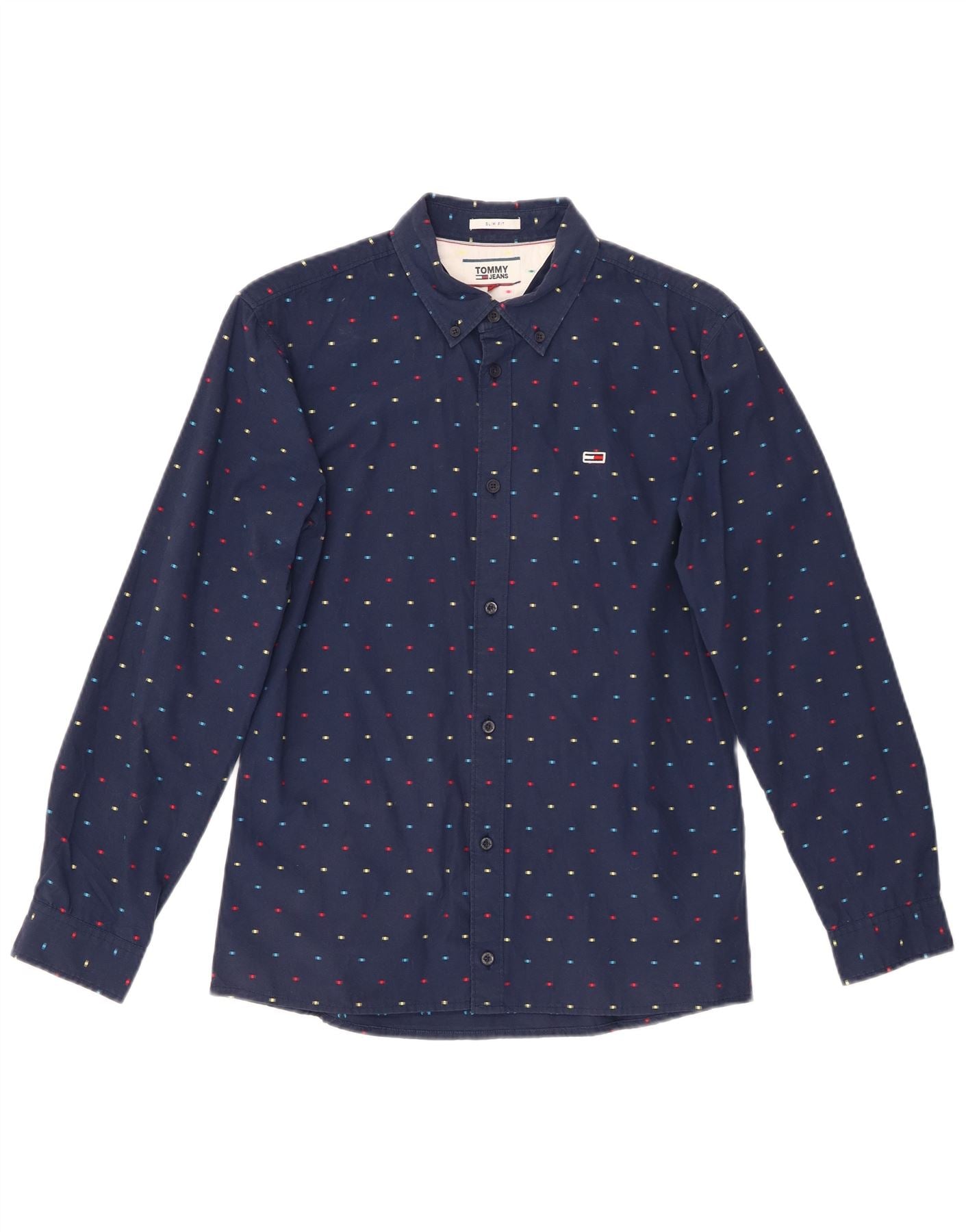 TOMMY HILFIGER Slim Fit skjorte til mænd, lille marineblå plettet bomuld
