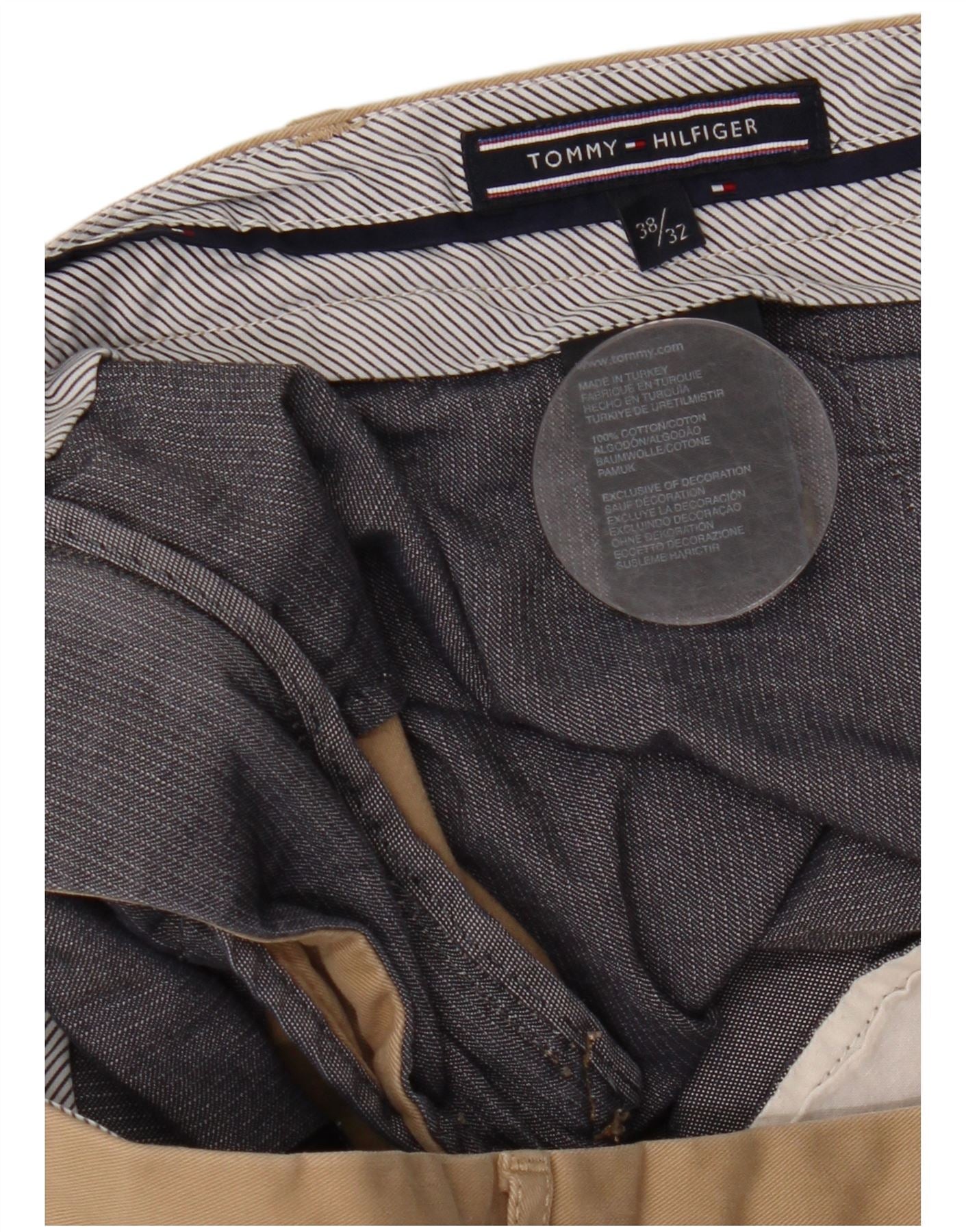 TOMMY HILFIGER Lige Chinobukser til mænd W38 L32 Beige Bomuld