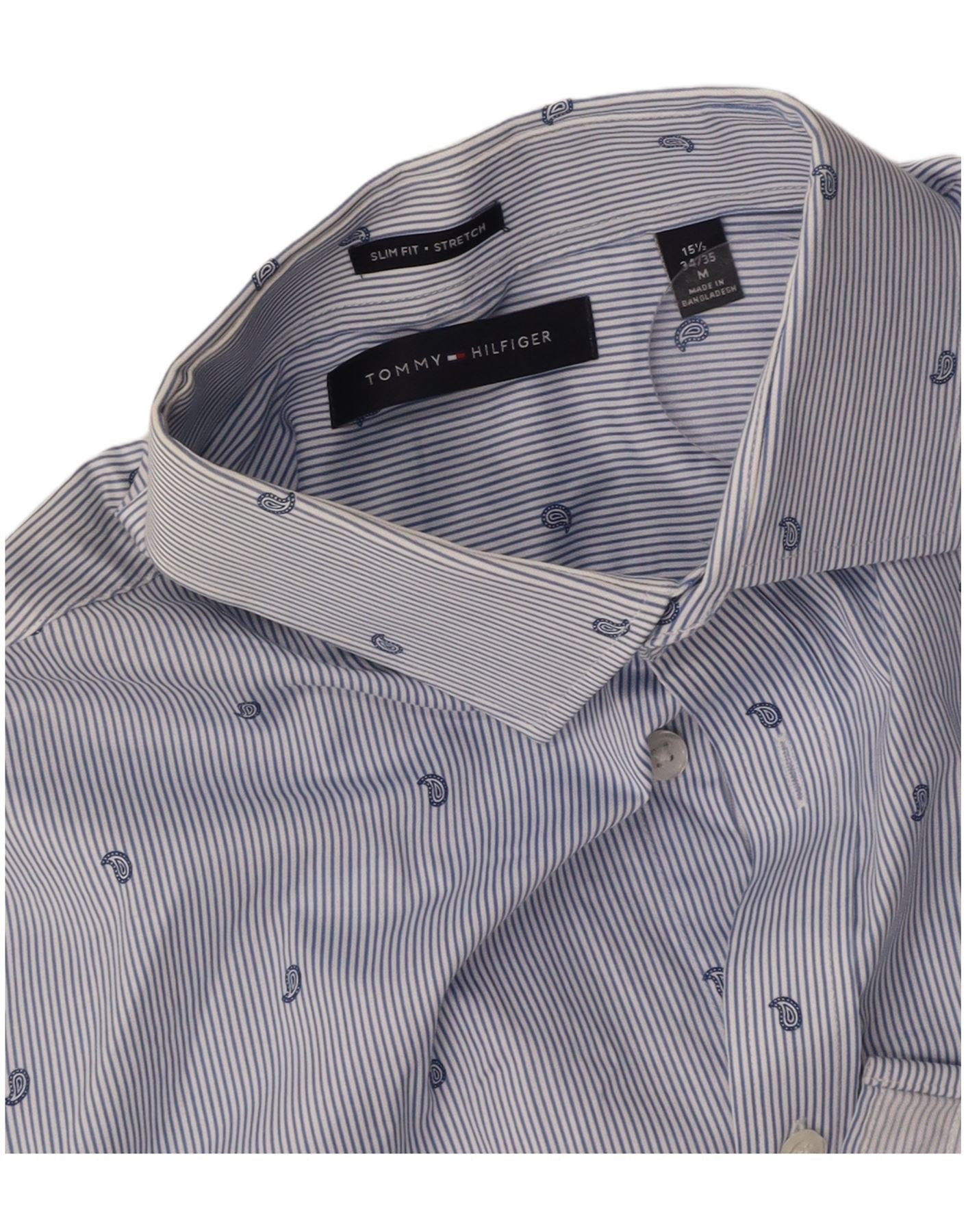TOMMY HILFIGER Stretch-skjorte til mænd str. 15 1/2 Medium Blue Nålestribe