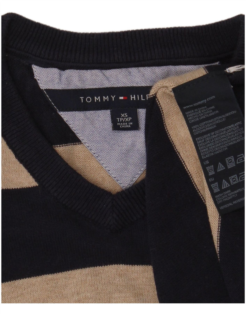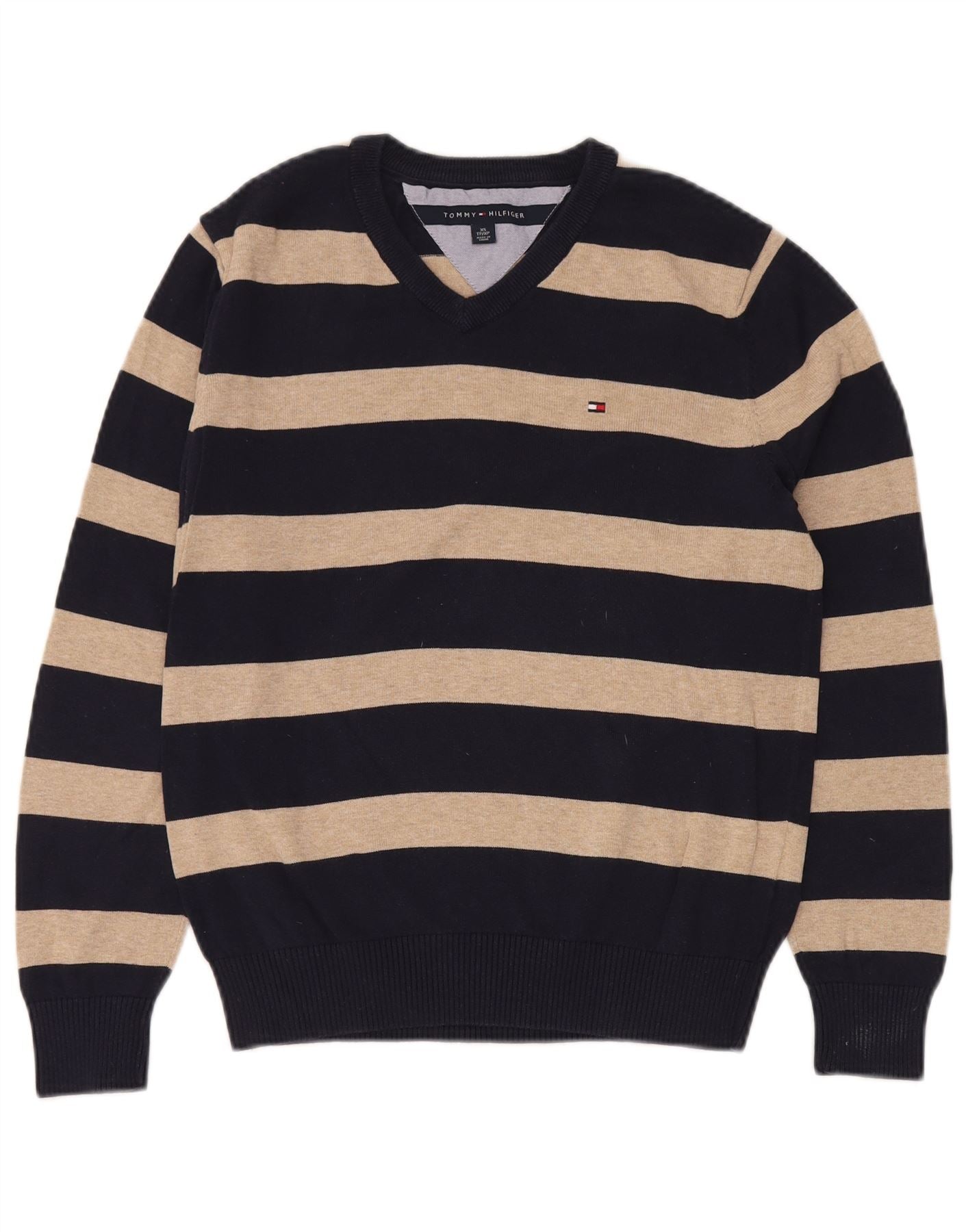 TOMMY HILFIGER Herre V-hals sweater XS Marineblå stribet bomuld