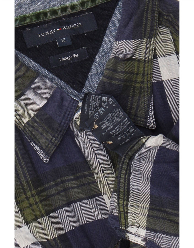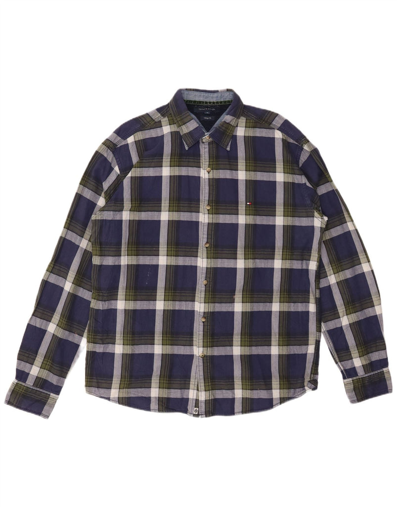 TOMMY HILFIGER Herre Vintage Fit Flanellskjorte XL Marineblå ternet bomuld