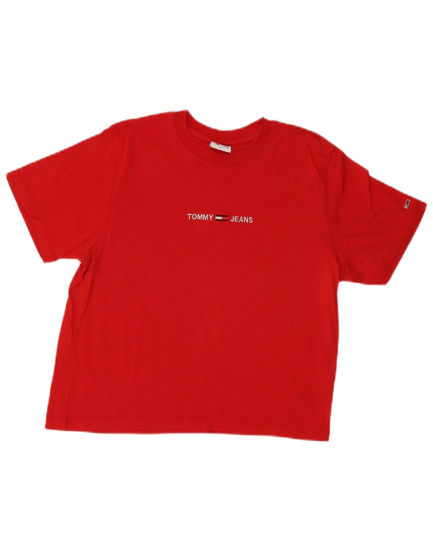 TOMMY HILFIGER Womens Crop Graphic T-Shirt Top UK 10 Small Red Cotton