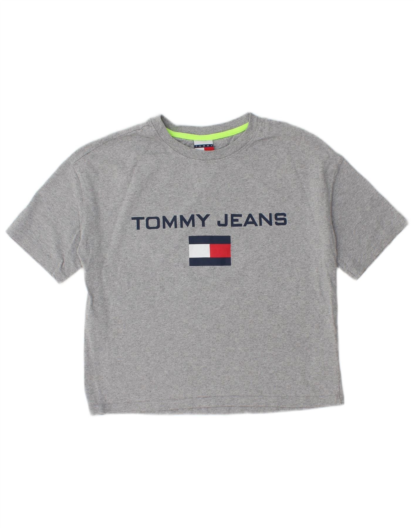 TOMMY HILFIGER Womens Crop Oversized Graphic T-Shirt Top UK 6 XS Grey