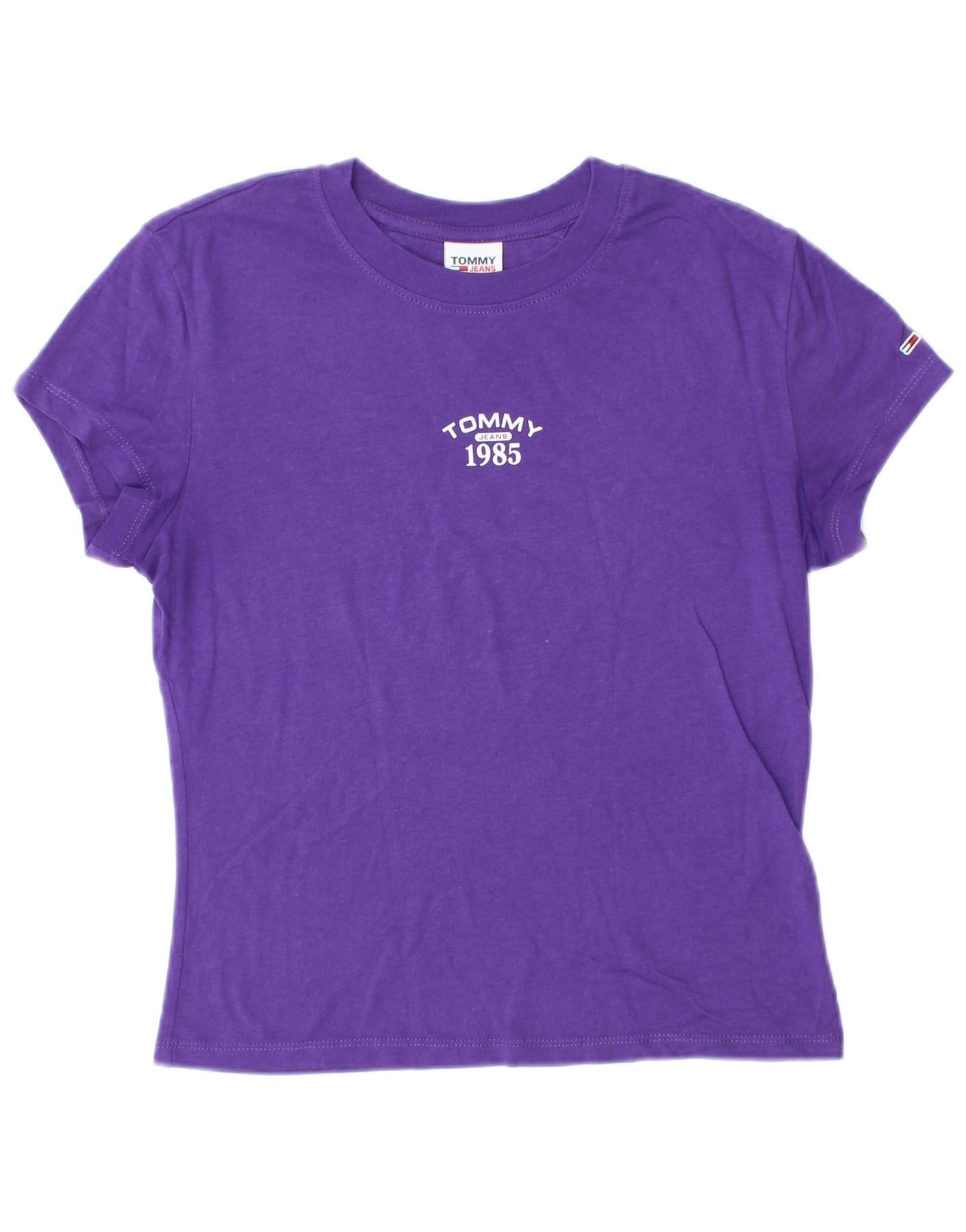 TOMMY HILFIGER Womens Crop T-Shirt Top UK 10 Small Purple