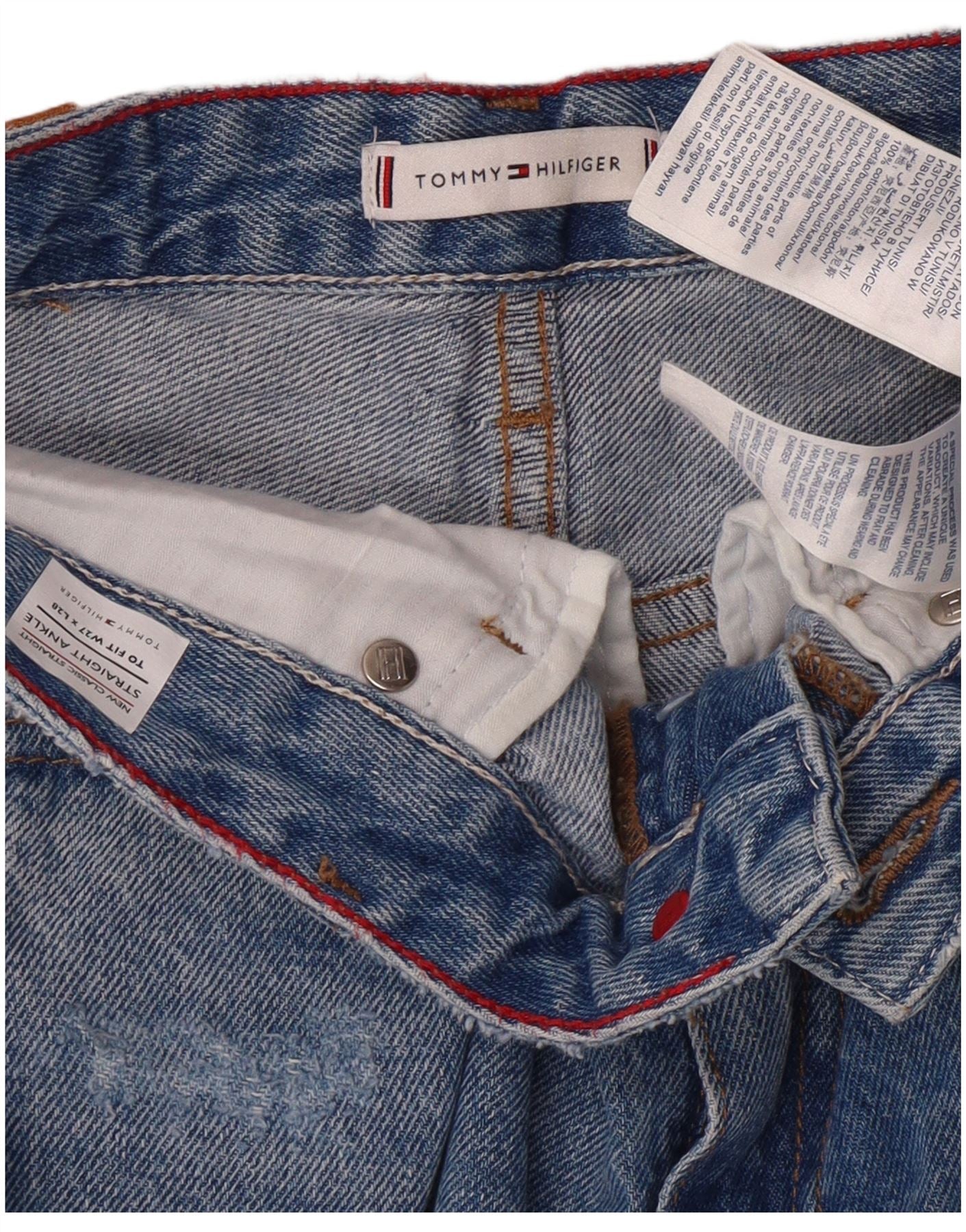 - AI beskrivelse: Disse lige damejeans fra Tommy Hilfiger er lavet af en behagelig denimblanding af bomuld med et strejf af stretch. Den klassiske blå vask har distresserede detaljer for et moderne, afslappet look. De har en knaplukning og en normal pasform, der tilbyder en afslappet, men alligevel struktureret silhuet. Det lige bensnit og ankellængde giver en alsidig og moderne stil. Lommer og strækstof sikrer funktionalitet og brugervenlighed.