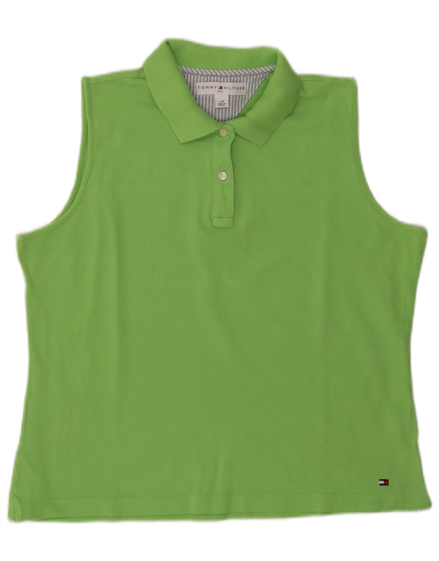 TOMMY HILFIGER Dame Golf ærmeløs polotrøje UK 16 Stor grøn bomuld
