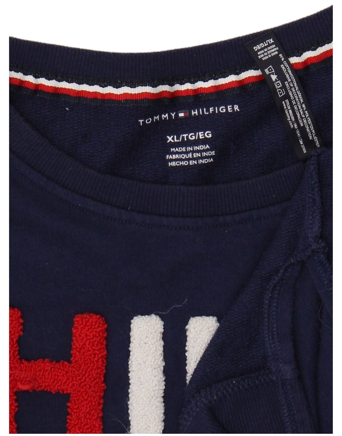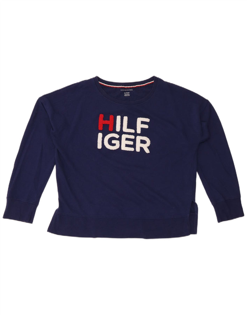 TOMMY HILFIGER Womens Graphic Sweatshirt Jumper UK 18 XL Navy Blue Cotton