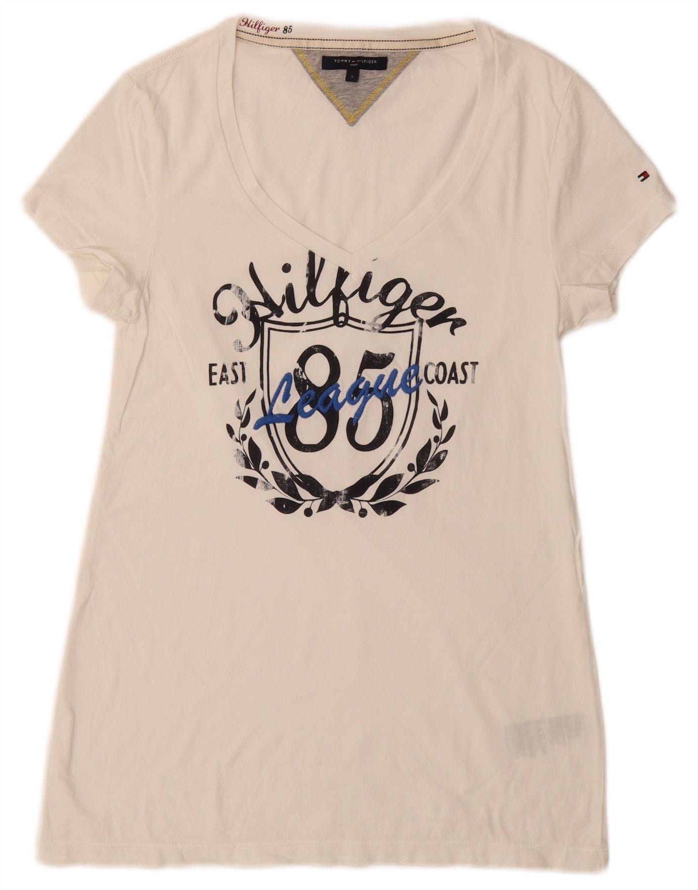 TOMMY HILFIGER Grafisk T-shirt top til kvinder DK 10 Lille hvid bomuld