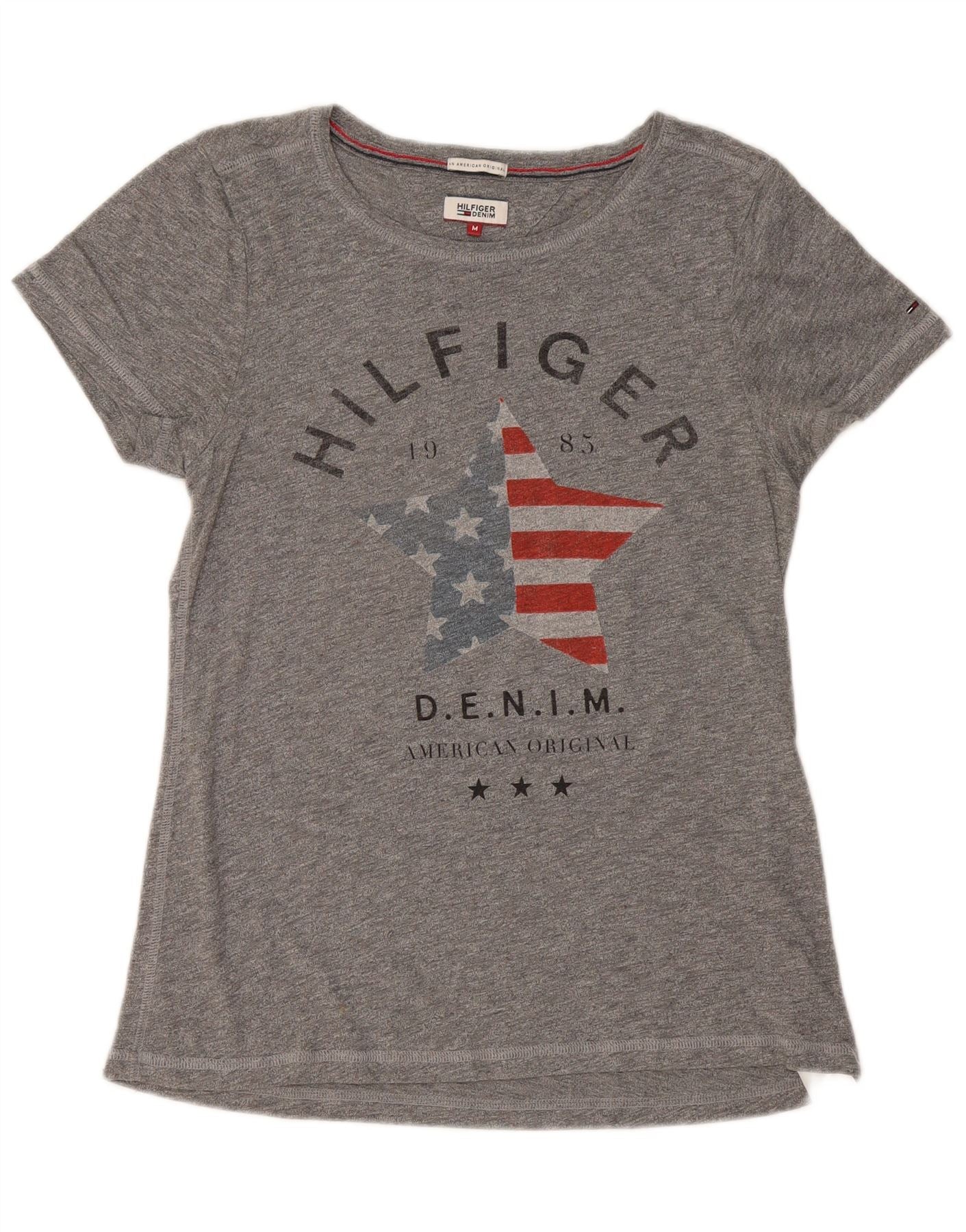 TOMMY HILFIGER Womens Graphic T-Shirt Top UK 12 Medium Grey Flecked