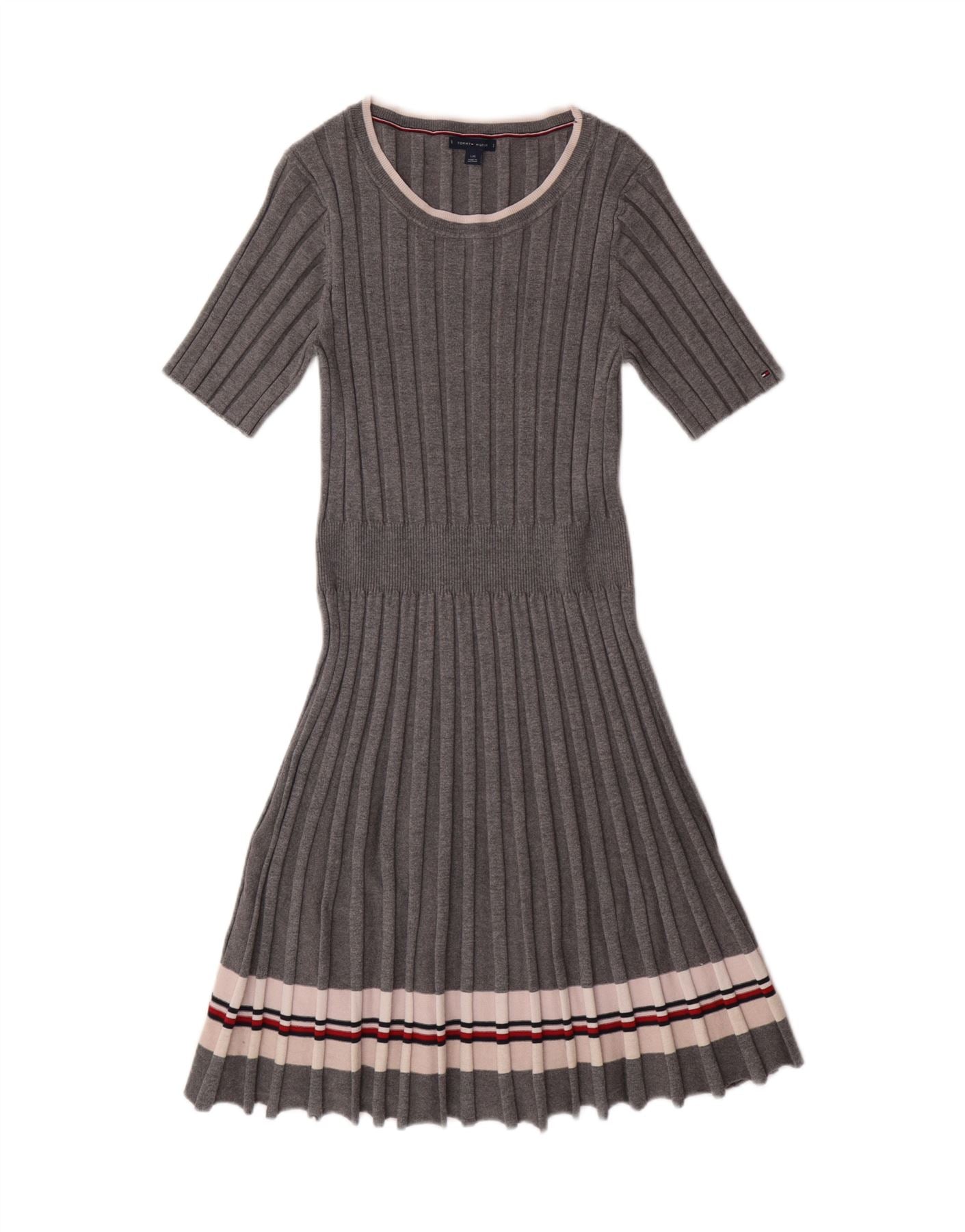 TOMMY HILFIGER Jumperkjole til kvinder UK 14 Stor gråstribet viskose