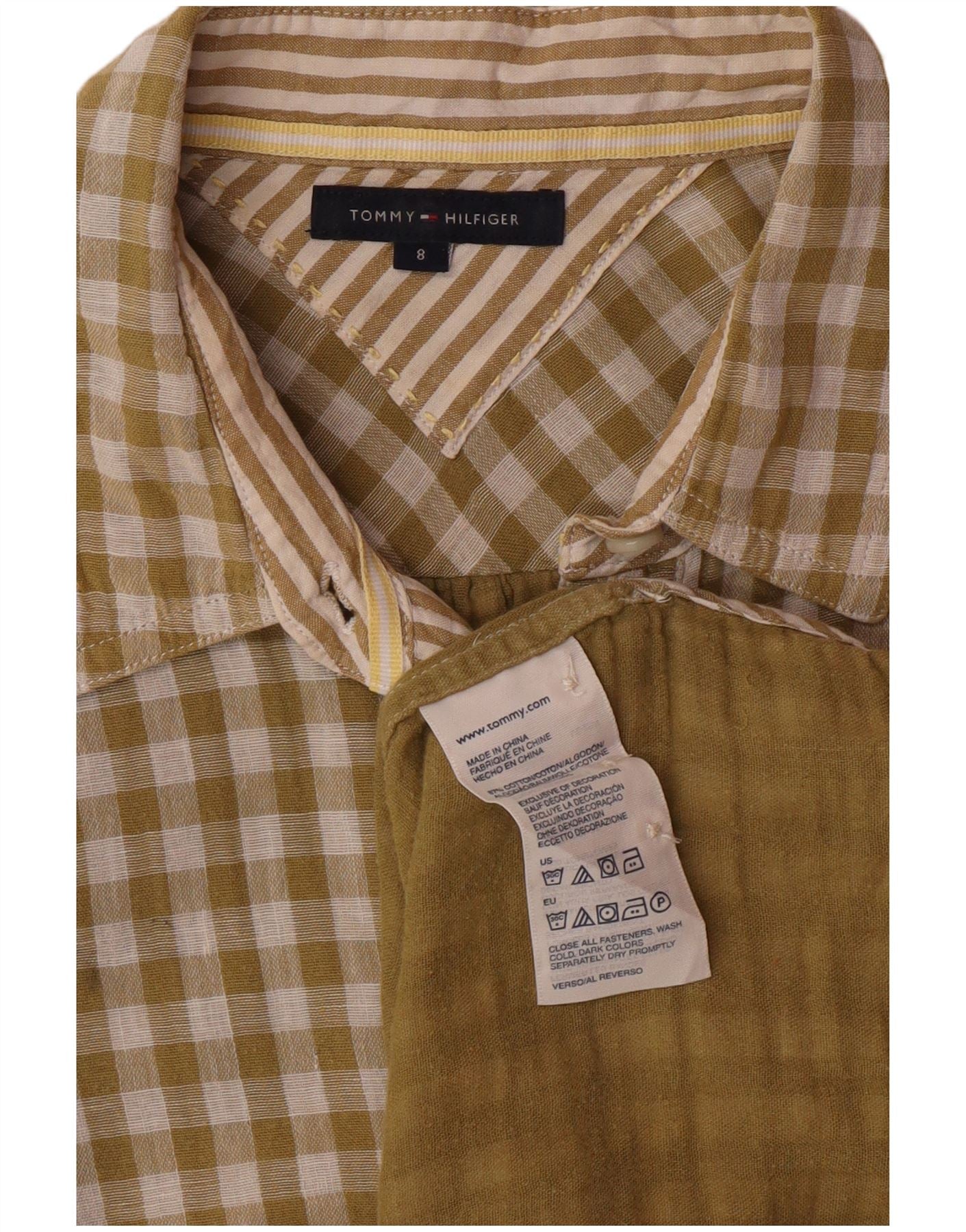 TOMMY HILFIGER Longline skjorte til kvinder US 8 Medium Green Gingham Cotton