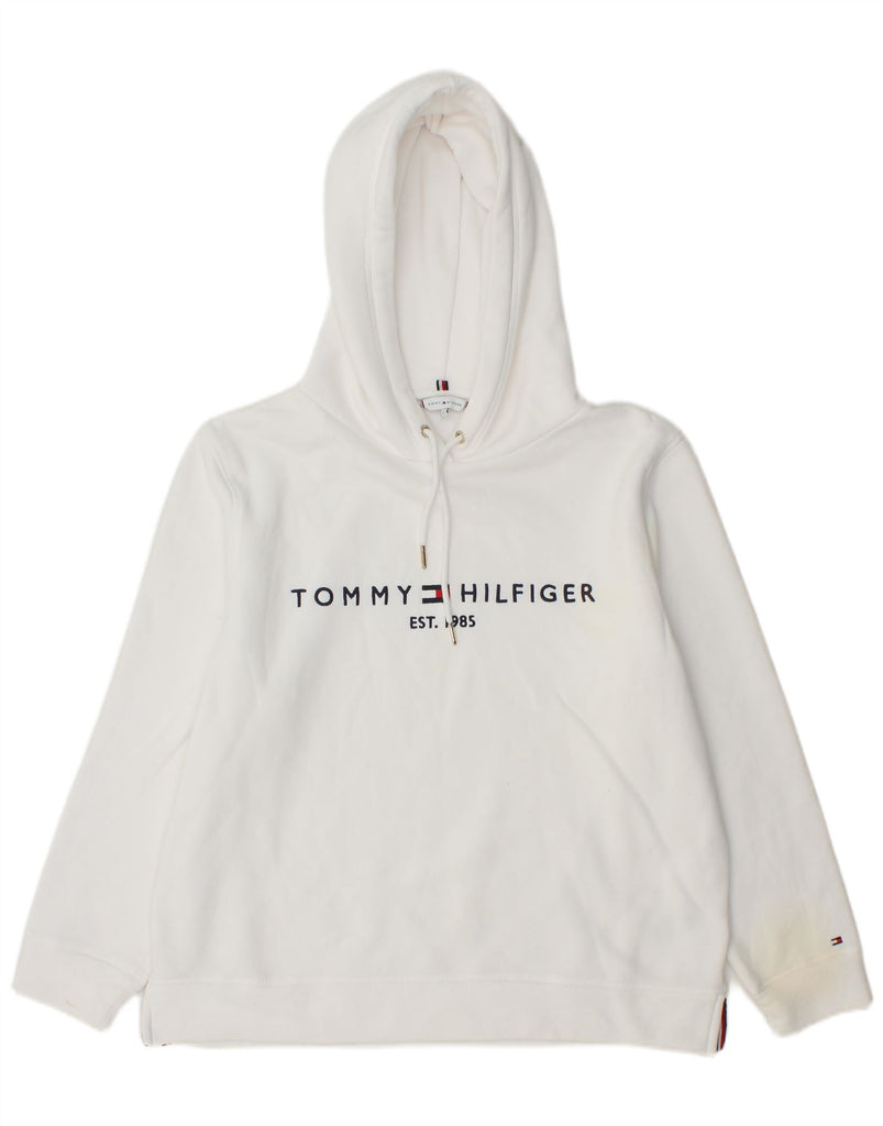 TOMMY HILFIGER Womens Loose Fit Graphic Hoodie Jumper UK 16 Large White