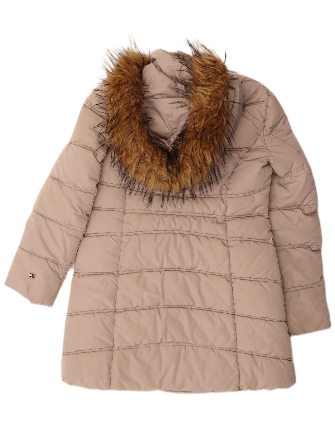 TOMMY HILFIGER Womens Oversized Hooded Padded Coat UK 10 Small Beige
