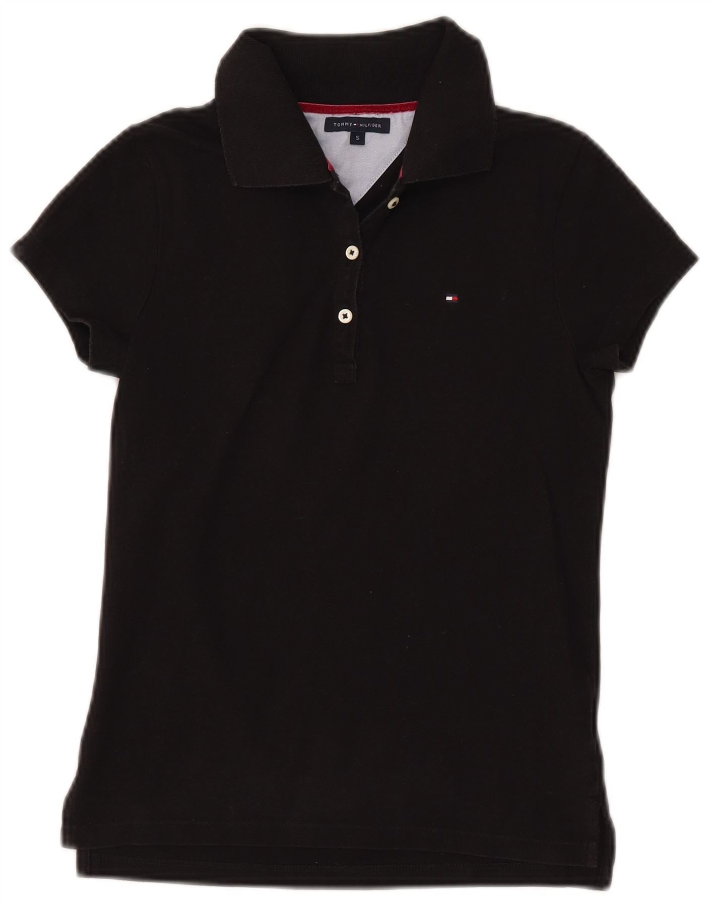 TOMMY HILFIGER Dame poloshirt UK 8 Small Black Bomuld