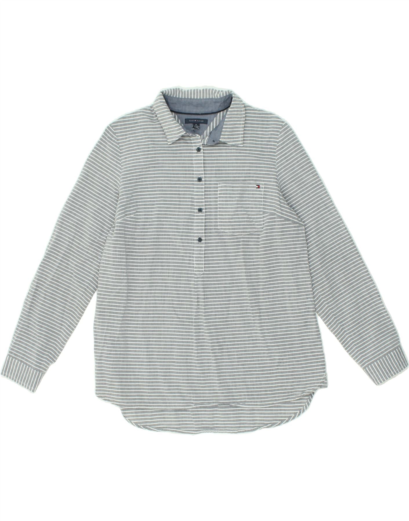 TOMMY HILFIGER Womens Pullover Shirt UK 14 Medium Grey Striped Cotton