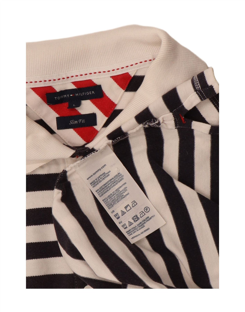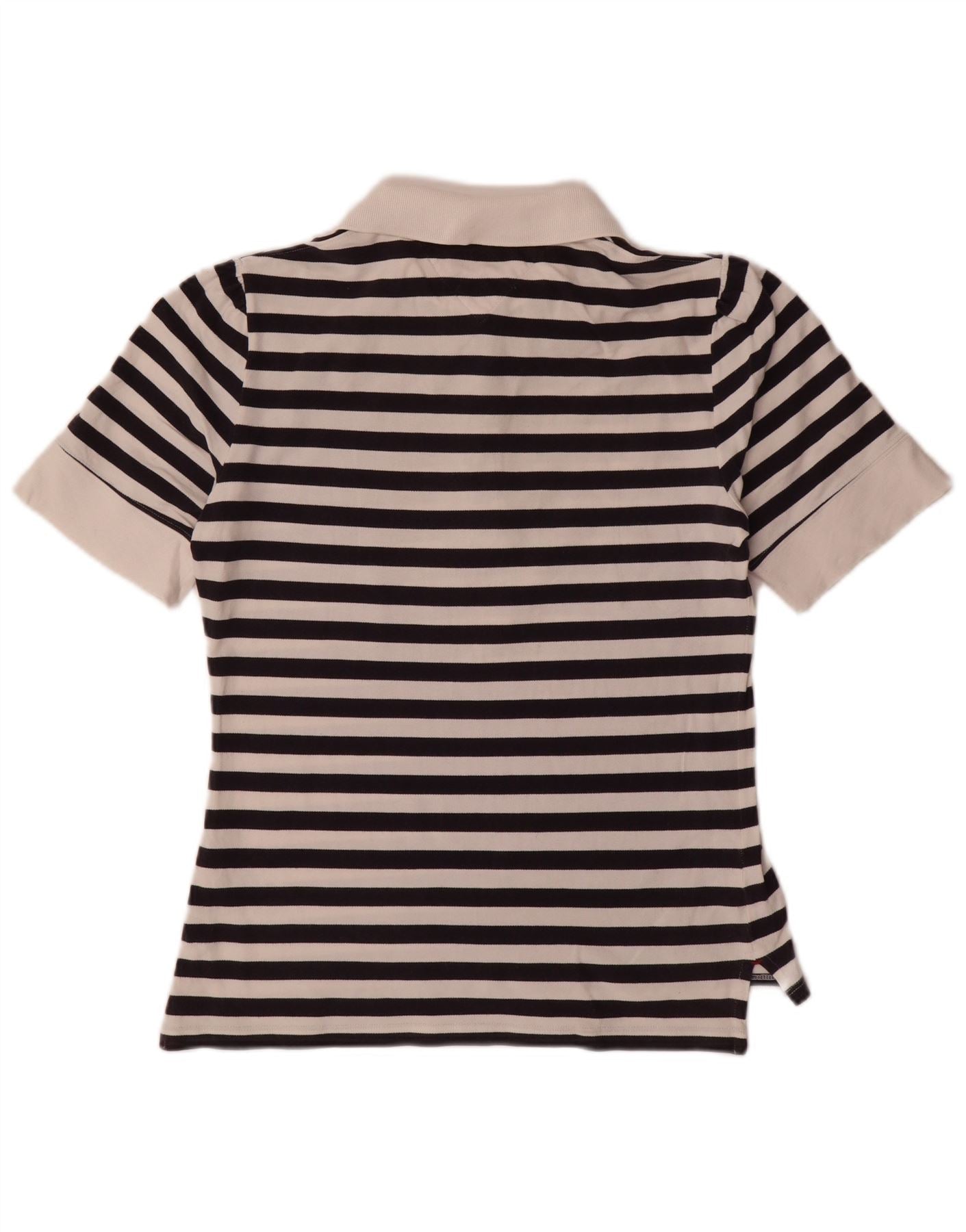 TOMMY HILFIGER Dame Slim Fit Polo Shirt UK 14 Stor sortstribet bomuld
