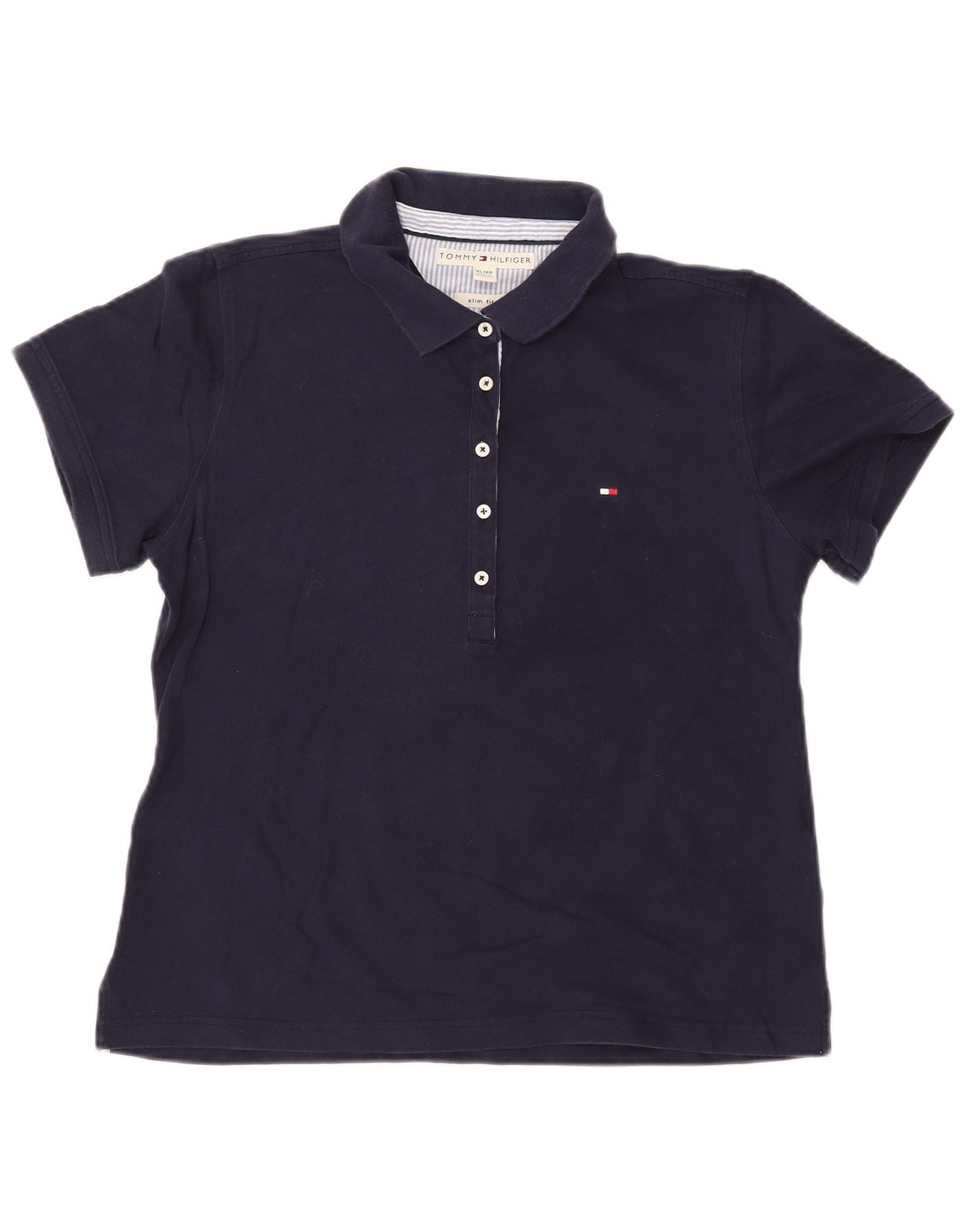 TOMMY HILFIGER Dame Slim Fit Polo Shirt UK 18 XL Marineblå Bomuld
