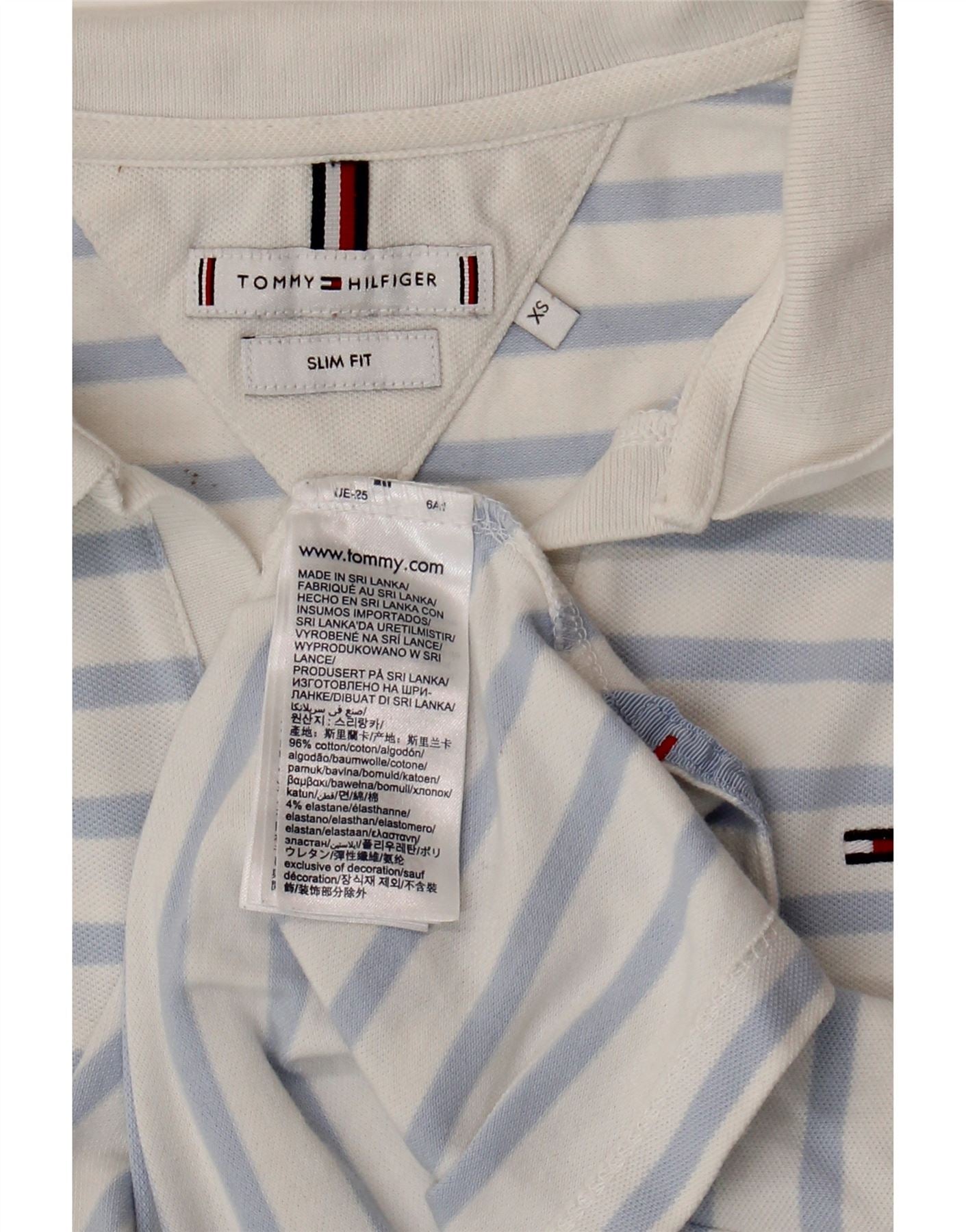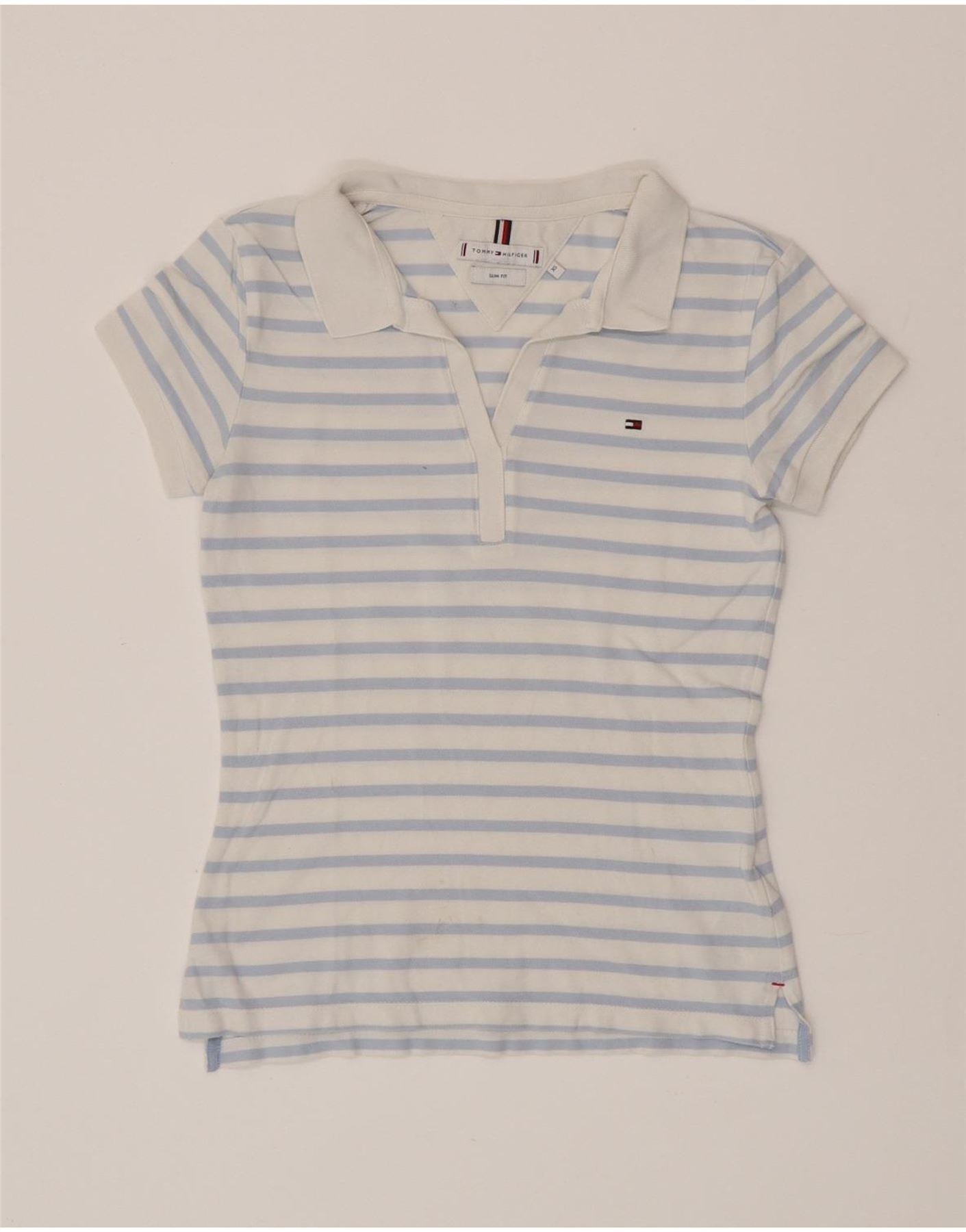 TOMMY HILFIGER Dame Slim Fit Polo Shirt UK 6 XS blå stribet bomuld