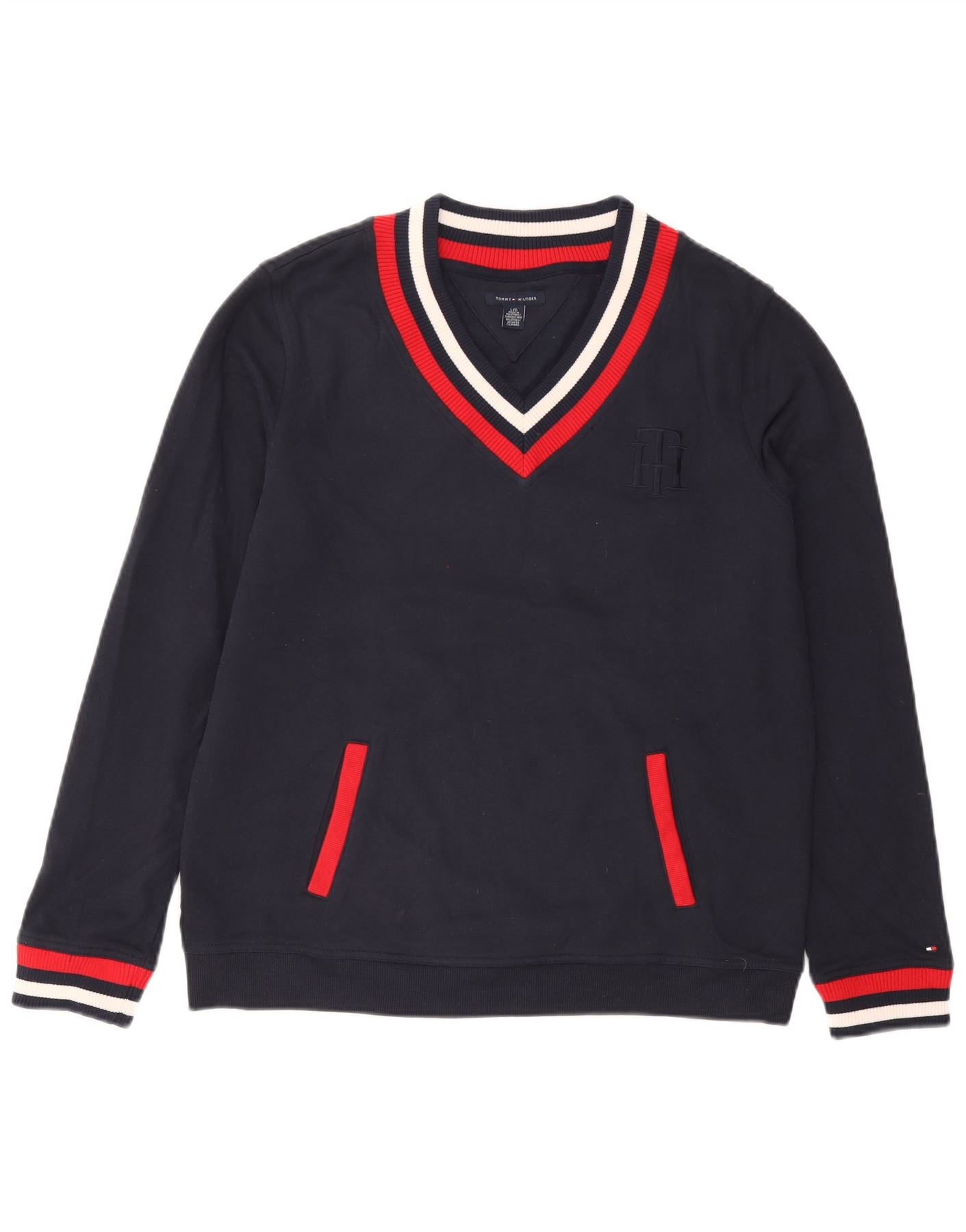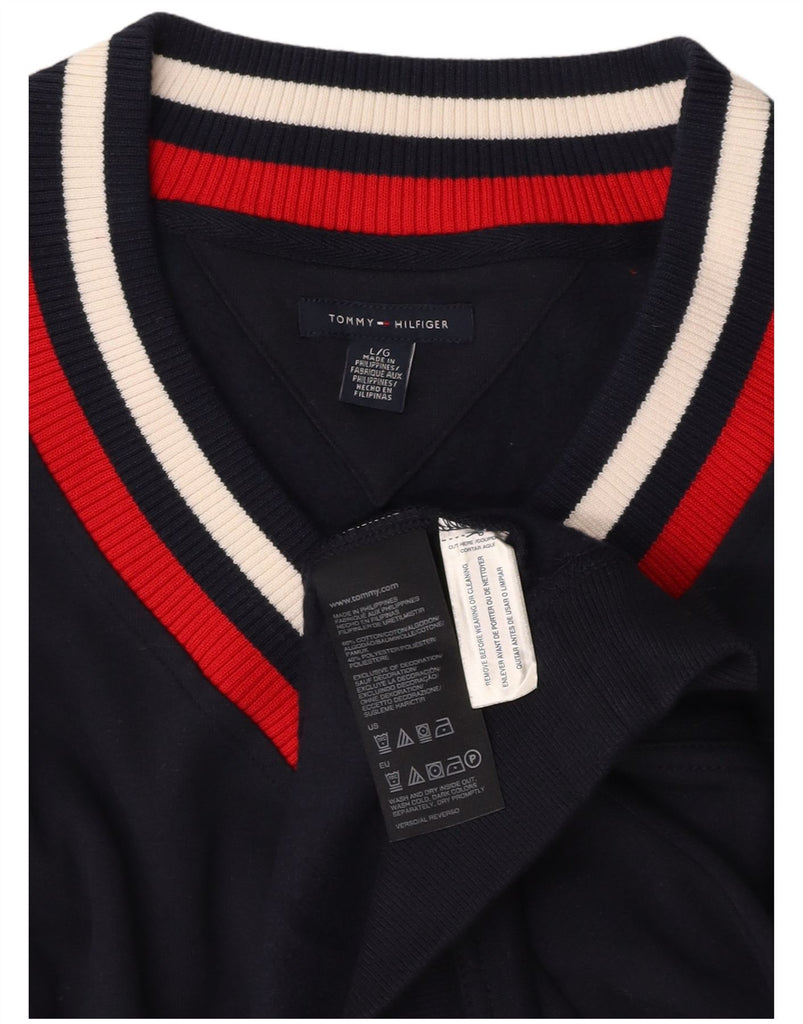TOMMY HILFIGER Womens Sweatshirt Jumper UK 16 Large Navy Blue Cotton