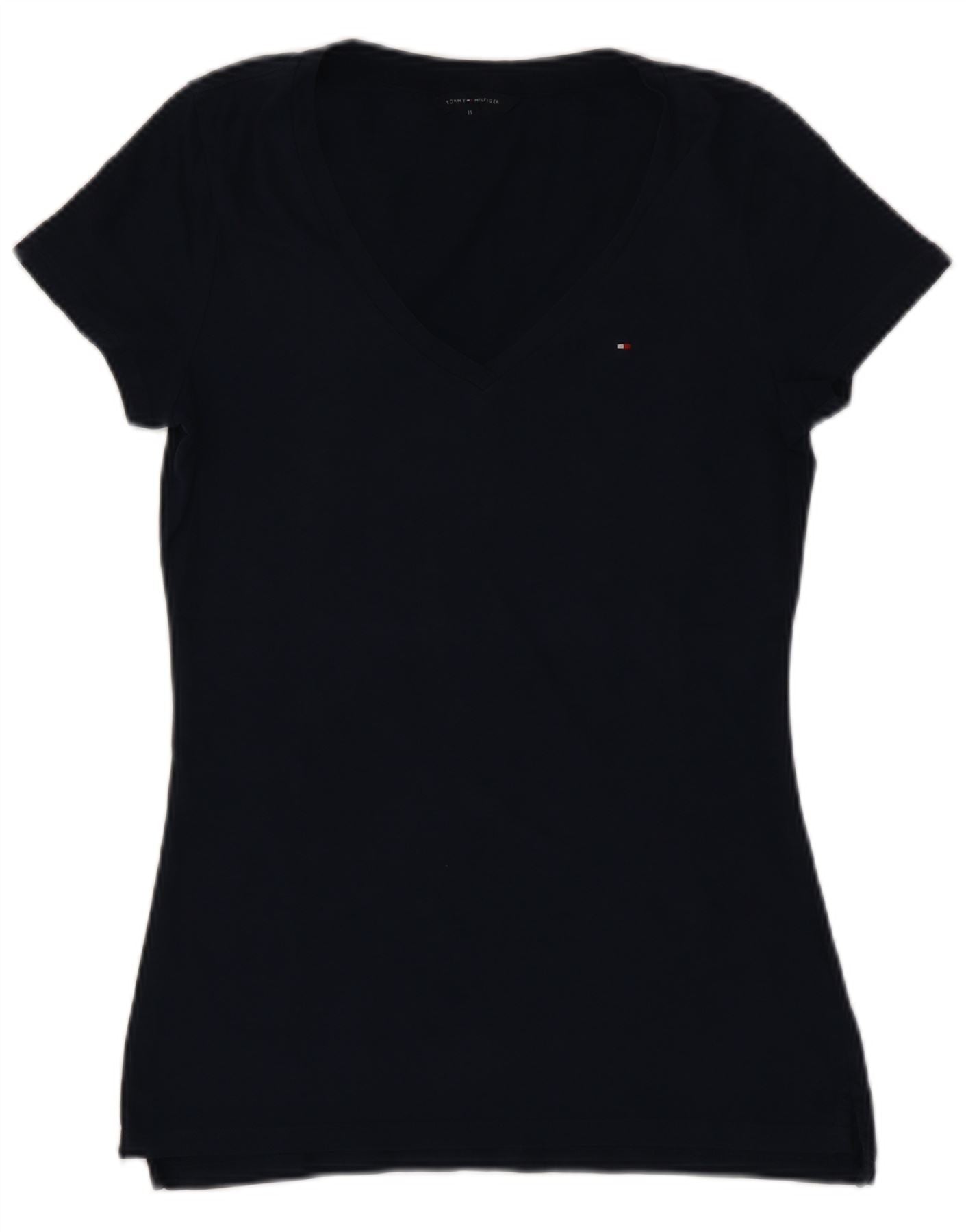 TOMMY HILFIGER T-shirt top til kvinder UK 12 Mellem marineblå bomuld