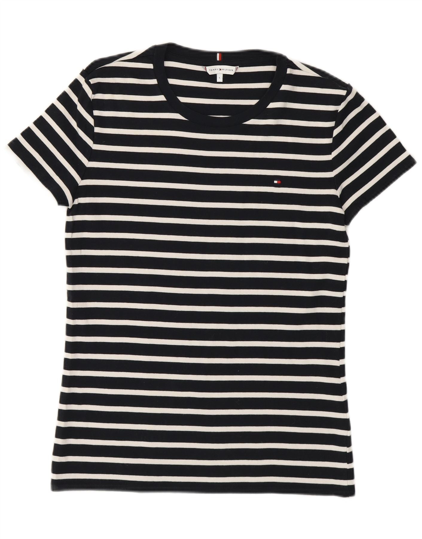 Home > Tommy Hilfiger > Kvinders > T-shirts > Tommy Hilfiger T-shirt top til kvinder UK 14 Stor marineblå stribet bomuld