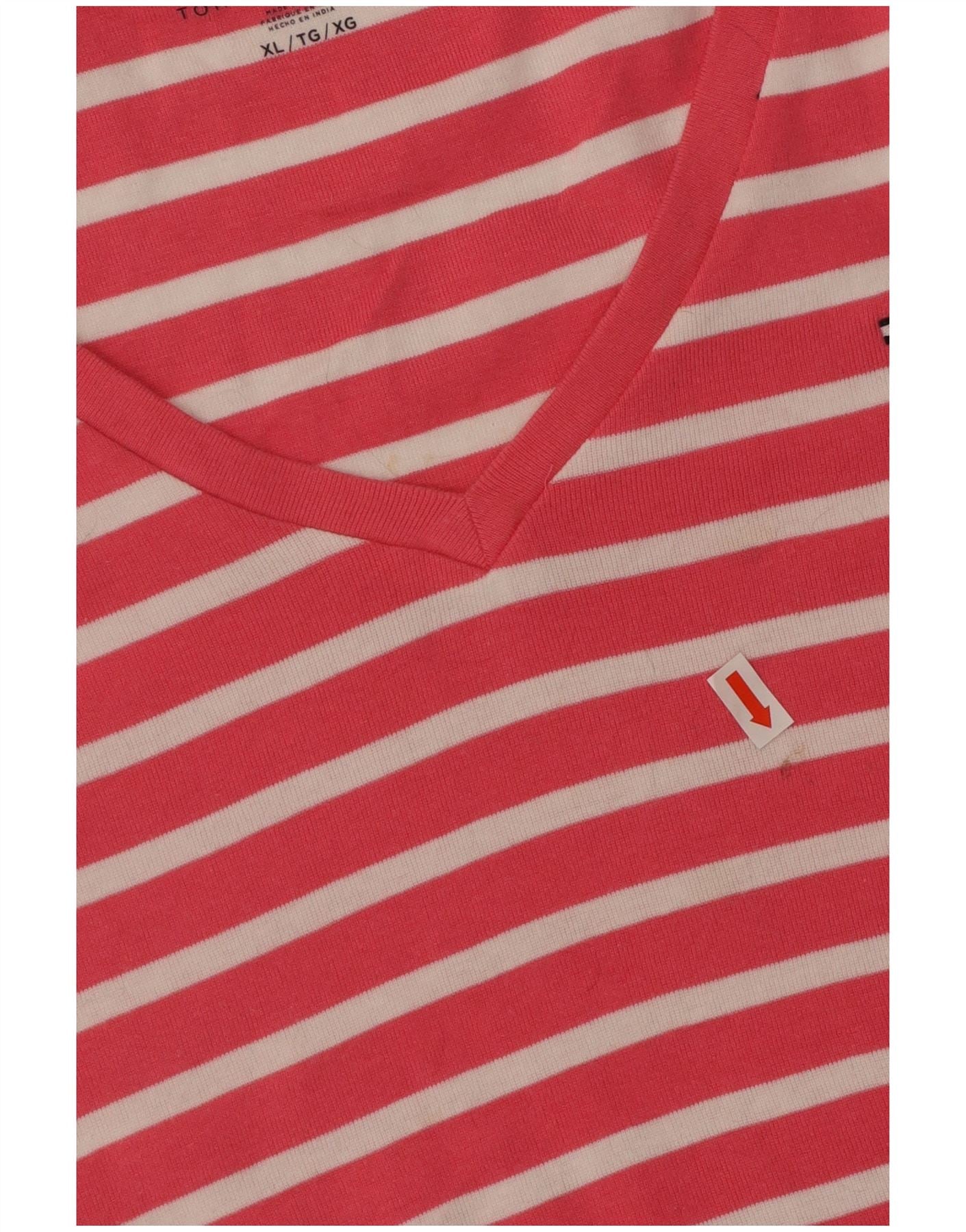TOMMY HILFIGER T-shirt top til kvinder UK 18 XL Pink Stribet bomuld