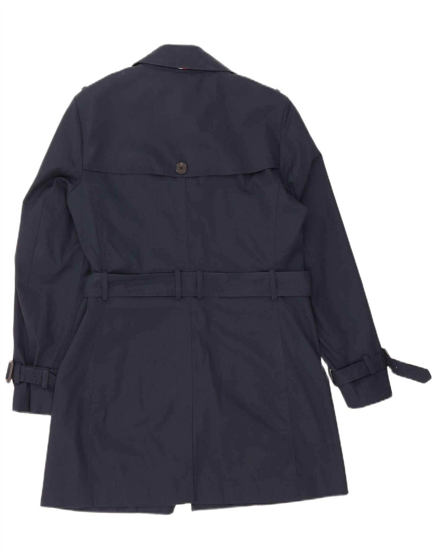TOMMY HILFIGER Womens Trench Coat UK 14 Medium Navy Blue Cotton