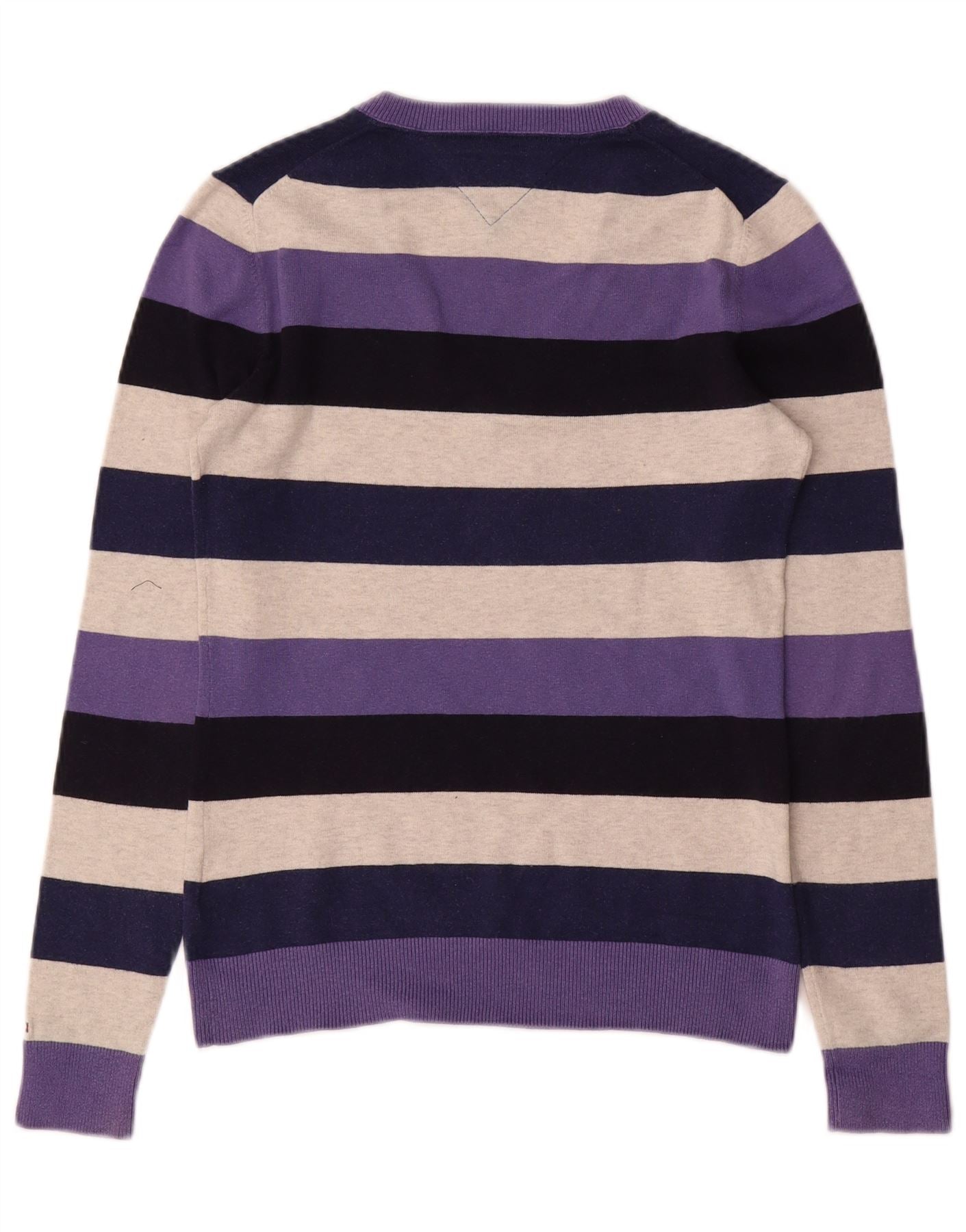 TOMMY HILFIGER Womens V-Neck Jumper Sweater UK 10 Small Purple Striped